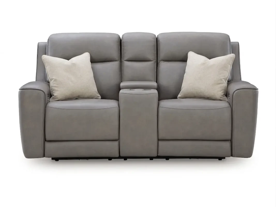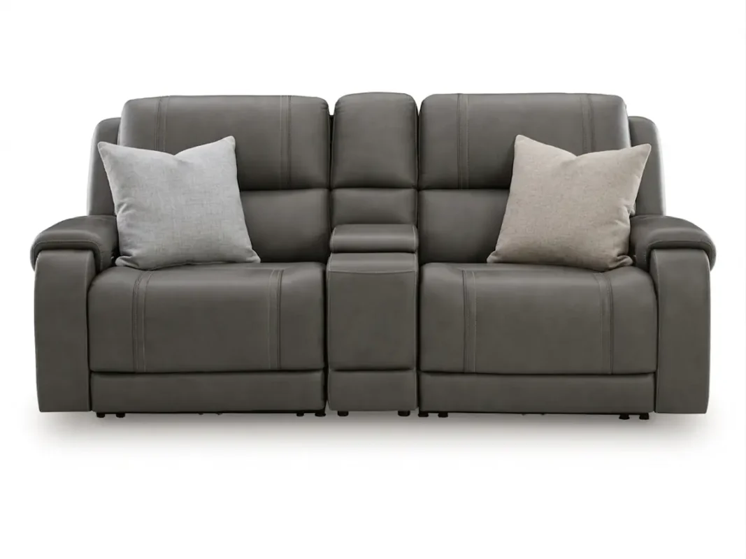 5Z-Harrenhurst 3-Piece Leather Dual Power Reclining Modular Loveseat with Console