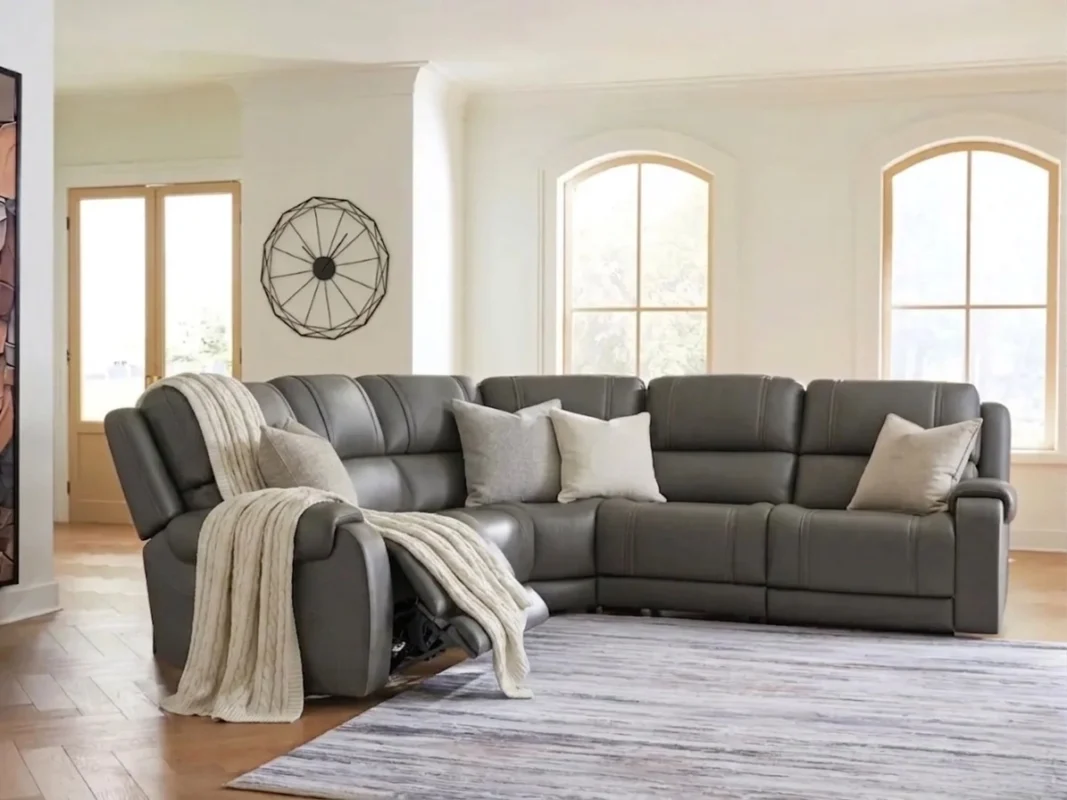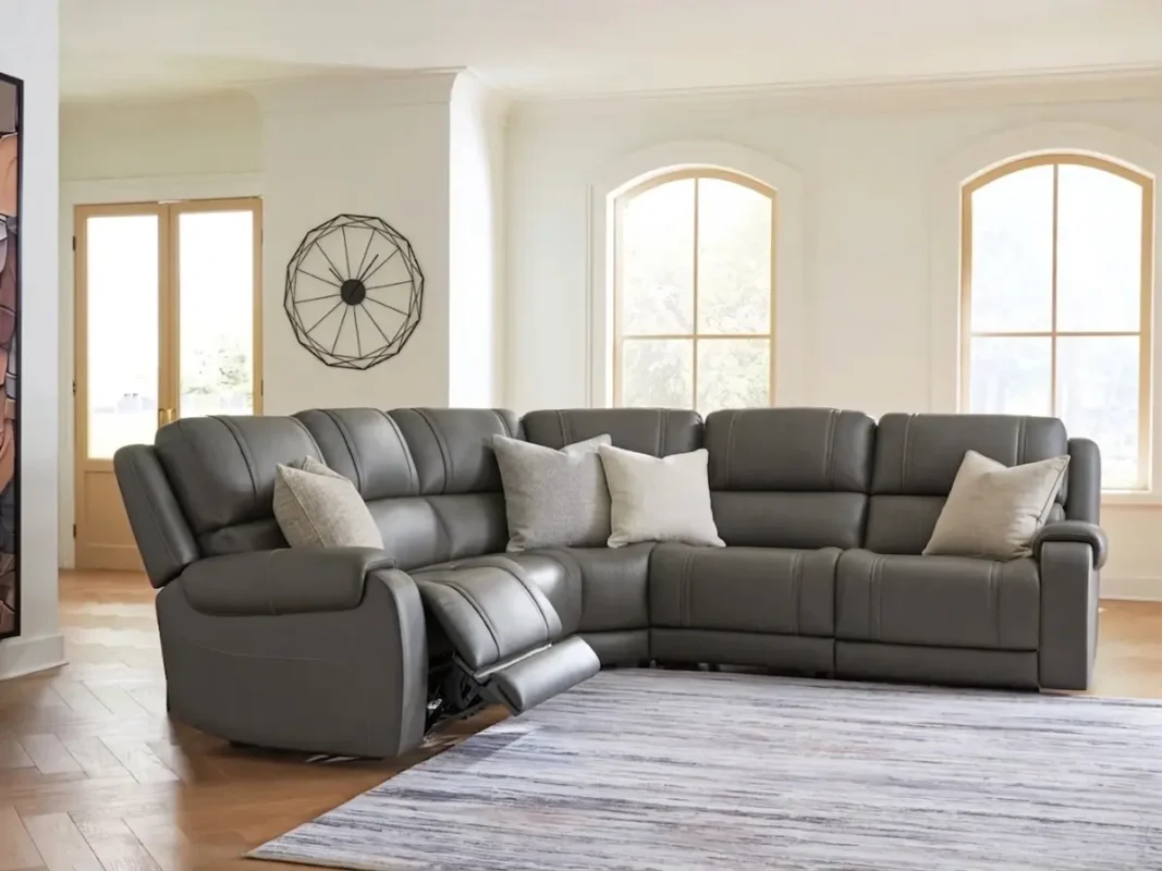 5Z-Harrenhurst 5-Piece Leather Dual Power Reclining Modular Sectional