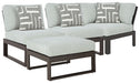 Sleek, contemporary style meets outdoor living in this sectional. Its clean-lined black aluminum frame and resin wicker back expertly balance good looks and longevity. The enhanced UV resistance of Nuvella+™ fabric keeps the cushions light and bright, weathering the seasons beautifully. And the modular design allows you to switch up the layout when it’s time for a refresh. With this sectional on the back porch or poolside, you can confidently curate a luxe vibe.