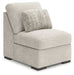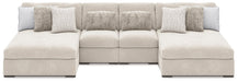 - Modular pieces can float anywhere; sides are finished (with no connectors); versatile modular pieces fit together in a variety of configurations
