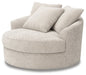 This plush oversized swivel accent chair is the ultimate spot to unwind after a long day. Its ultra soft upholstery feels luxurious against your skin, while the roomy seat and comfy throw pillows provide support in all the right places. With plenty of space to stretch out or snuggle up with loved ones, this modular piece is perfect for movie nights, game days and everything in between.