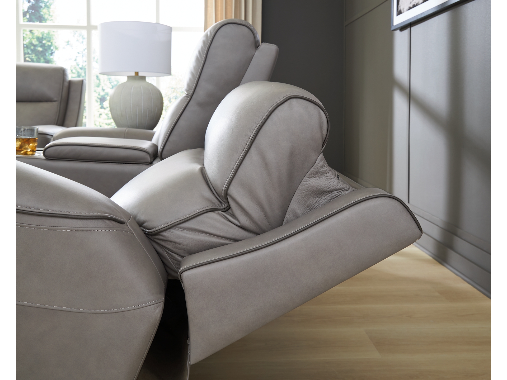 Masterfully blend high style and must-have comfort with the 5Z-Relaxation power reclining loveseat. Its clean, transitional look is crafted with luxury in mind, complete with supple top-grain leather in the seating area. Eloquently incorporated into the sleek design are features that take relaxation to the next level, like one-touch reclining and Easy Viewâ„¢ adjustable headrest. Even more indulgent? Heat and massage functions that bring soothing relief.