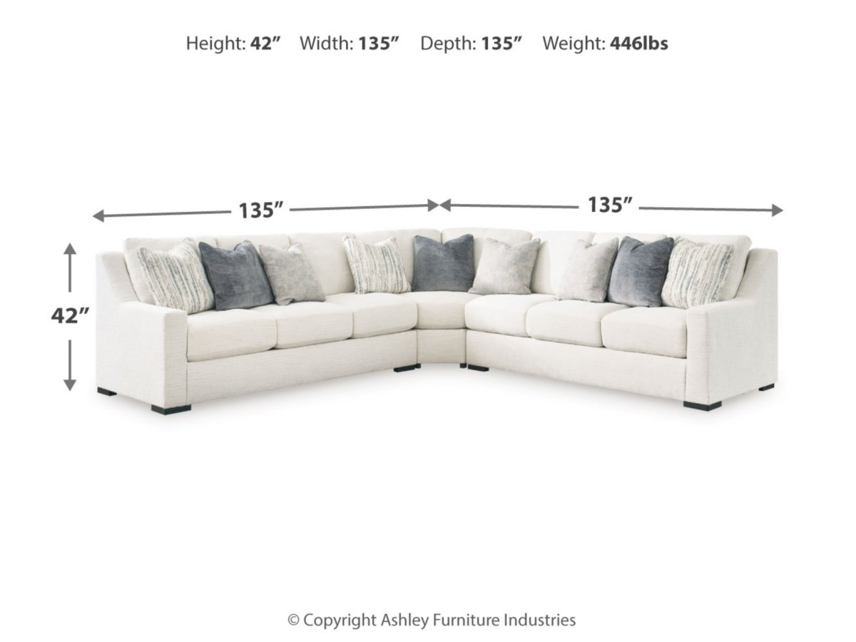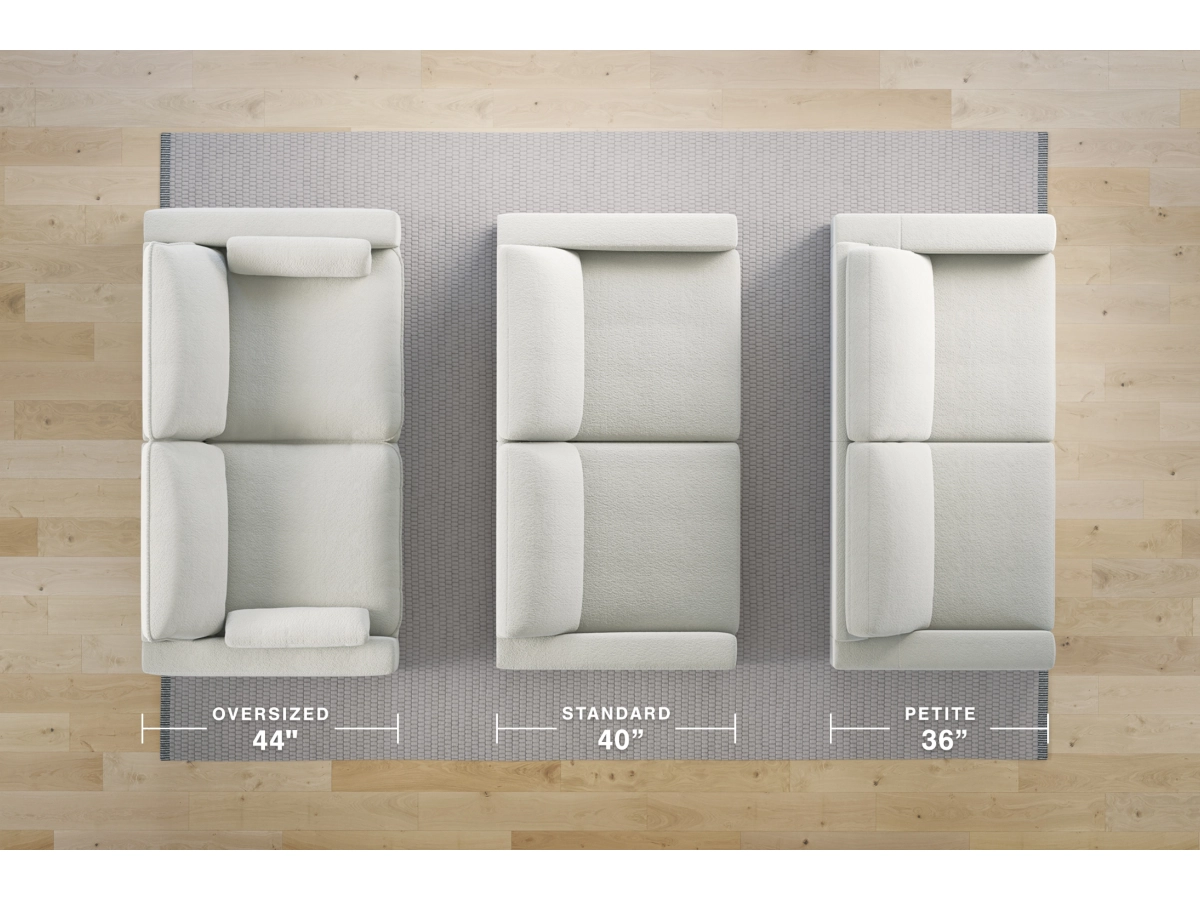 • Has three pieces: a right-arm facing sofa, a wedge, and a left-arm facing sofa.The terms “left-arm” and “right-arm” refer to the arm’s orientation when facing the piece.