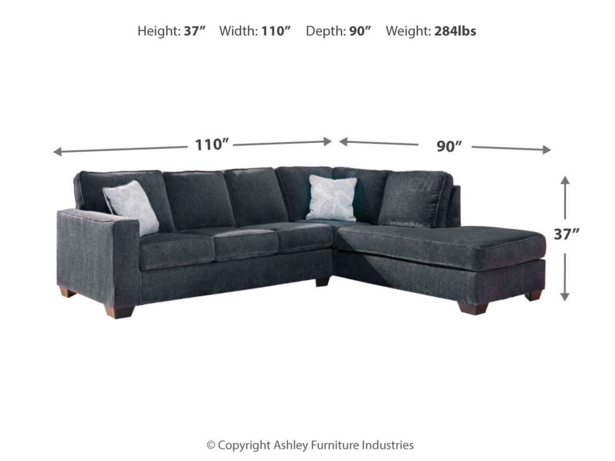 If style is the question, then the Altari sleeper sectional is the answer. Sporting clean lines and sleek track arms, the decidedly contemporary profile is enhanced with plump cushioning and a chenille-feel upholstery that’s so pleasing to the touch. Sure to play well with so many color schemes, this sleeper sectional in slate gray includes a pair of understated floral pattern pillows for fashionably fresh appeal. Crafted of quality memory foam, the pull-out full mattress comfortably accommodates overnight guests.