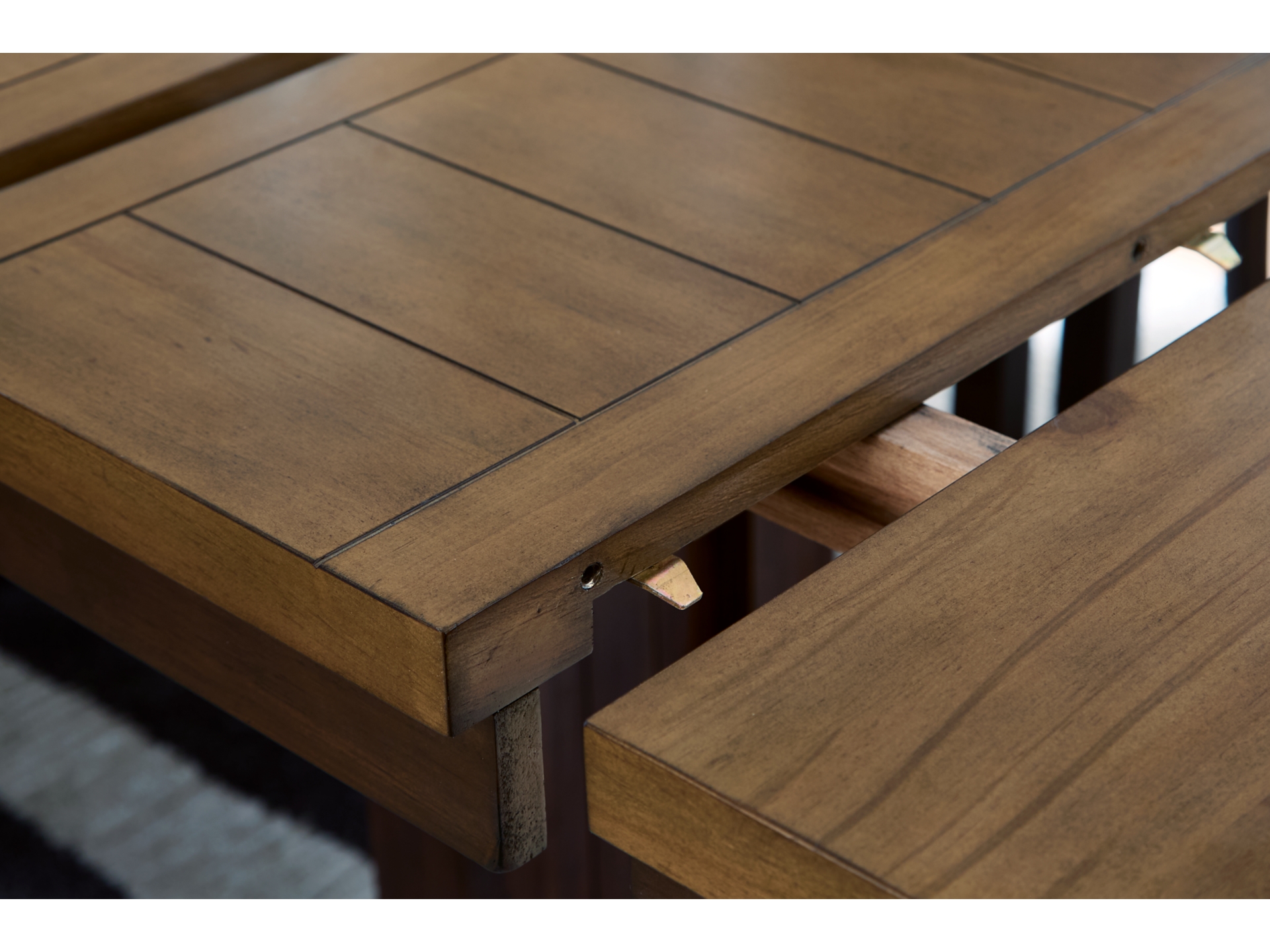 • Table extends by pulling both ends and dropping in leaves