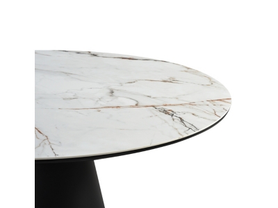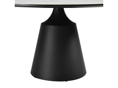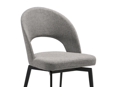 Enjoy an intimate meal or host a dinner party with the Knox Lucia 5 Piece Dining Set with Stone Top and Gray Fabric Chairs. This set includes 1 Knox dining table and 4 Lucia swivel dining chairs. Beautifully minimalistic, our dining chair stands out with a refined and striking silhouette. A sleek cut-out and slender black metallic legs complete the modern and sophisticated appeal of the kitchen chair. It’s ergonomically sculpted back delivers exceptional comfort, supporting you in just the right places. The back and seat are both generously padded to bring a dose of comfort to your formal and casual meals. Our dining room chair can also serve as a comfy seat in your home office or provide a comfortable spot to relax in your living room. The dining table chair also includes a 180 degree swivel function allowing you to change directions and follow conversations with ultimate ease. It is upholstered in performance fabric for easy care and maintenance. The refined and distinctive silhouette of the dining table attains a statement-making appeal in any room. It features a perfectly rounded tabletop perched upon an eye-catching pedestal base. Its Sintered Stone tabletop depicts the graceful and natural textures of white marble to add a polished touch to your casual or formal meals. This tabletop is resistant to etching, scratches, burns, and stains as a durable yet elegant alternative to quartz. It is perched upon a black metal base to attain contrast and a versatile appeal. The round dining table can comfortably seat up to six individuals for enjoying meals in your kitchen, dining room, or living space. A 55″ round shape allows the table to function as a natural hub for conversations. The Knox Lucia dining set is available in 5 and 7 piece set configurations and features a white stone tabletop with black metal base and gray upholstered swivel dining chairs.