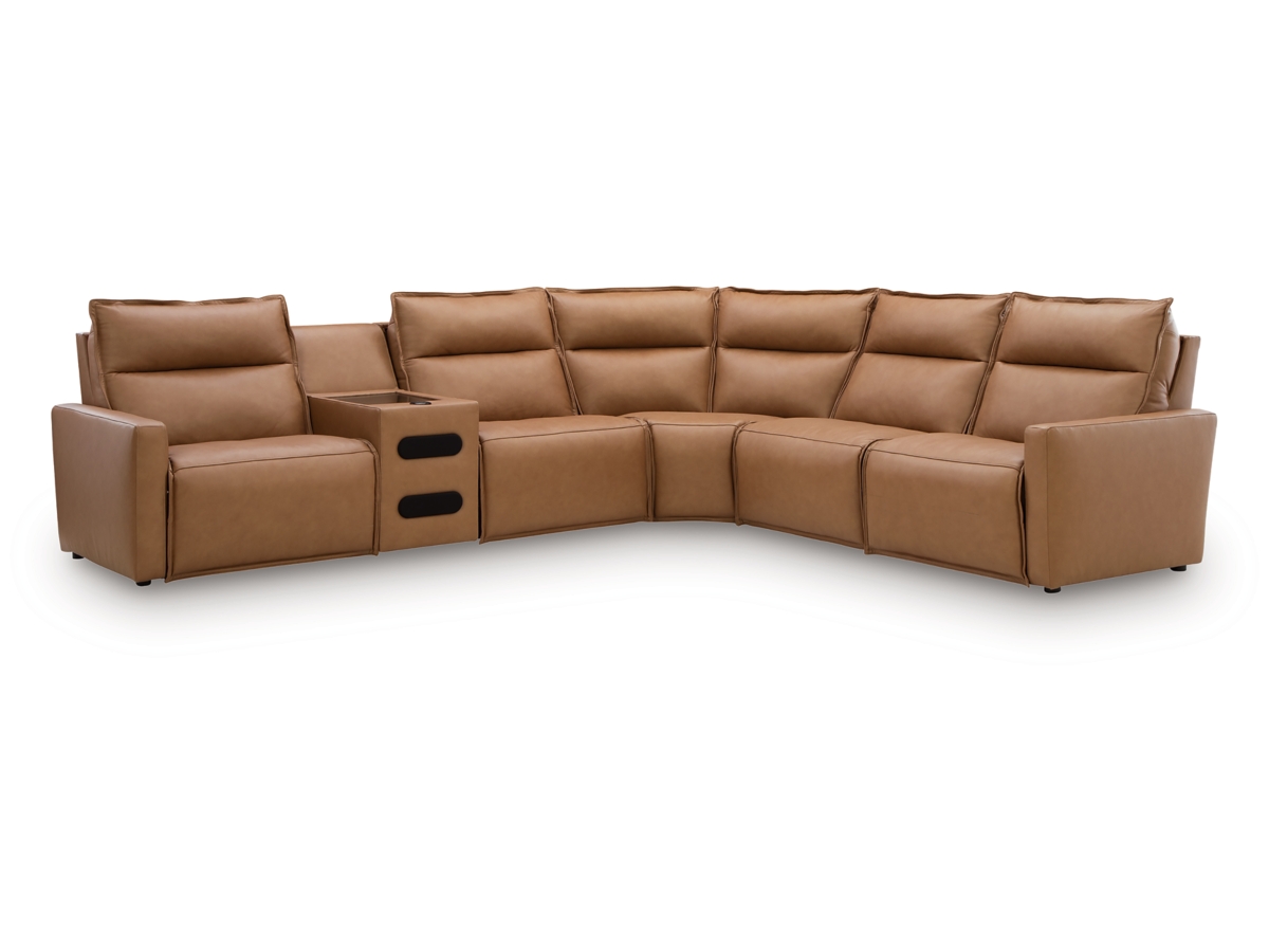 - Includes 6 modular pieces: left-arm facing power recliner, armless power recliner, armless chair, console with audio system, wedge and right-arm facing power recliner