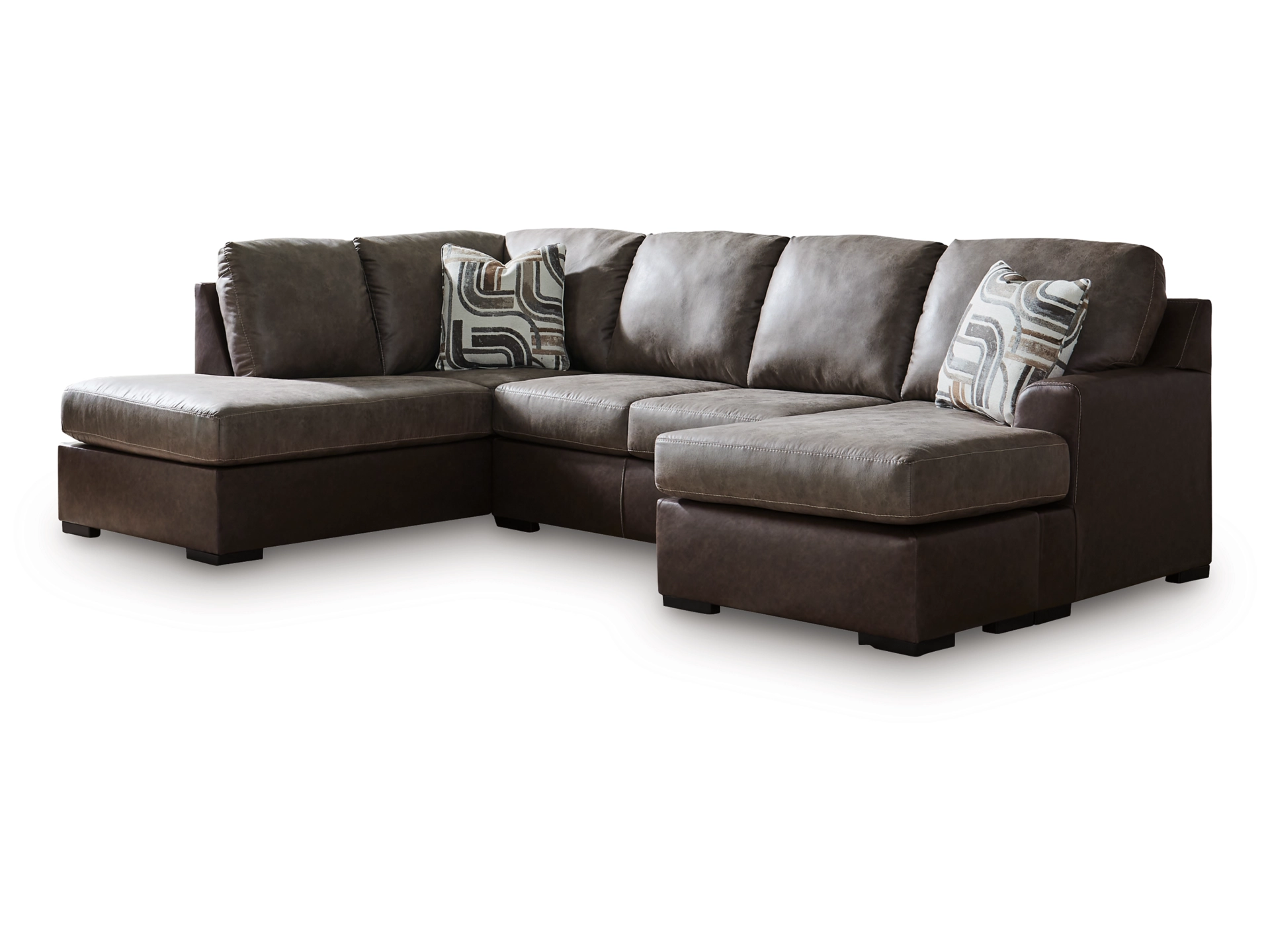 Living room lounging gets a dose of approachable luxury. The Baltic Park sleeper sectional with chaise is defined by supple faux leather in contrasting rich brown hues, creating a stylish monochromatic look with dimension. Guests dropping in? A built-in queen mattress easily accommodates overnighters. From morning coffee to late-night movie marathons, it’s sure to elevate the everyday.