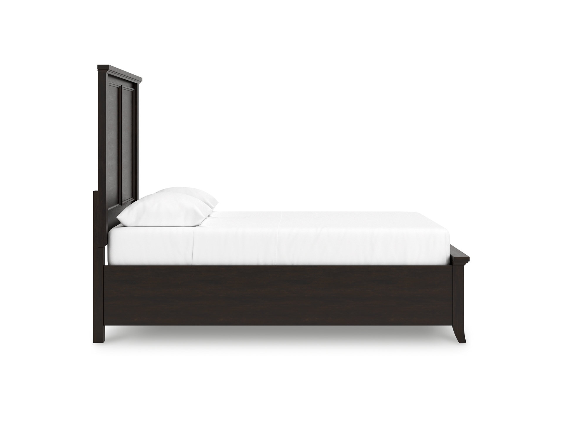 Whether you never want to leave your bed or can’t wait to get back into it, make your dreaming time stylish with the Bambori queen panel bed. A tall headboard and low-profile footboard deliver dimension to its contemporary look. Plus the rich dark brown finish adds lasting refinement. Let the blend of sophistication and easy style transform your dreams into reality.