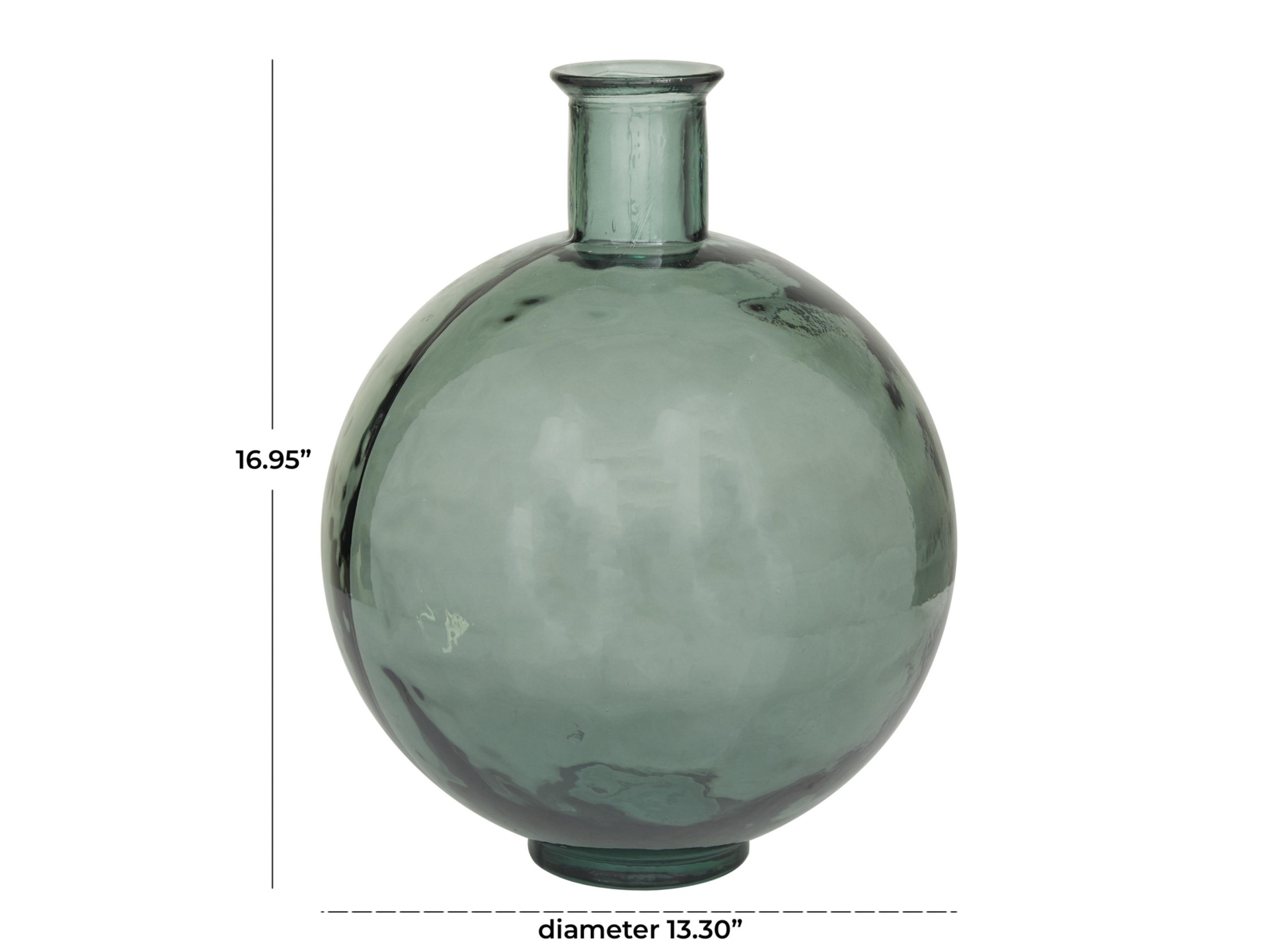• The green recycled glass vase measures 13.30L x 13.30W x 16.95H inches, and weighs 10.85 lbs