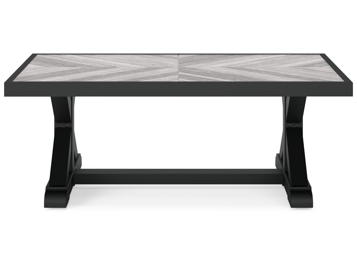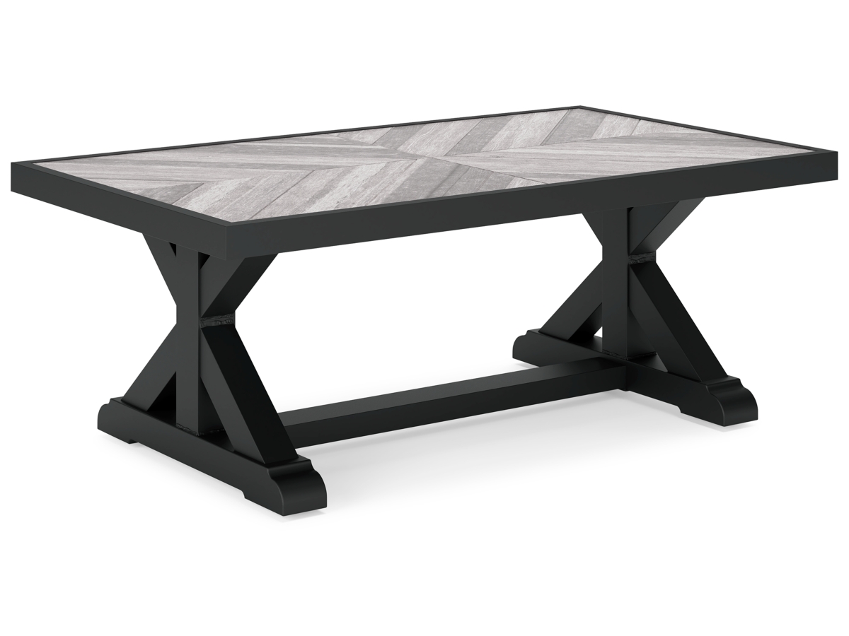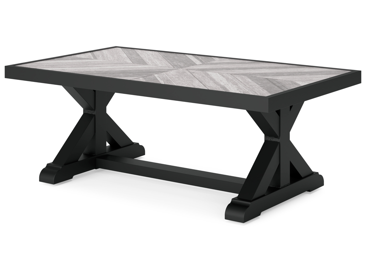 Sporting an easy-on-the-eyes elegance, the Beachcroft coffee table elevates the art of alfresco living. Beautiful and durable enough for indoor and outdoor use, this high-style/low-maintenance table charms with X-leg farmhouse styling. With a unique reverse diamond tile pattern, the thick porcelain tabletop provides unparalleled sophistication.
