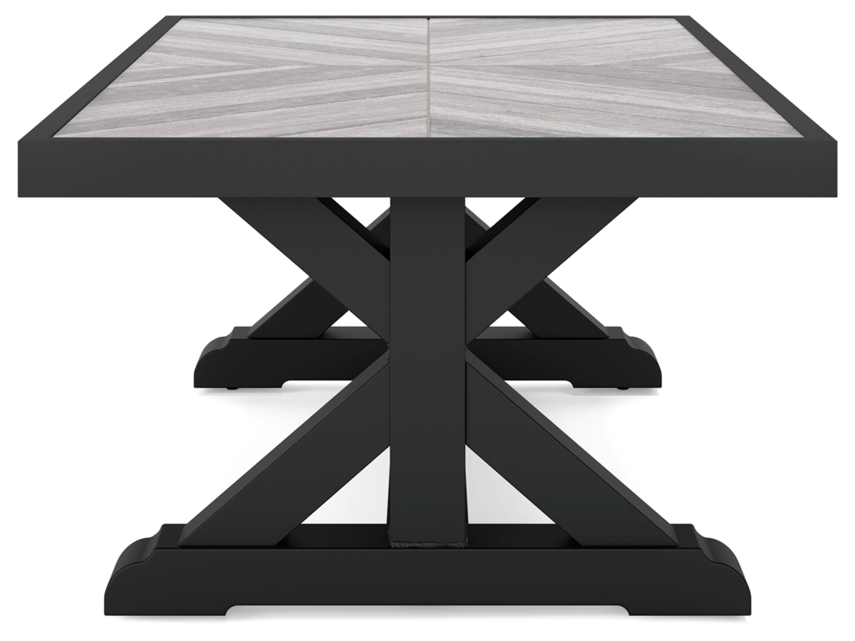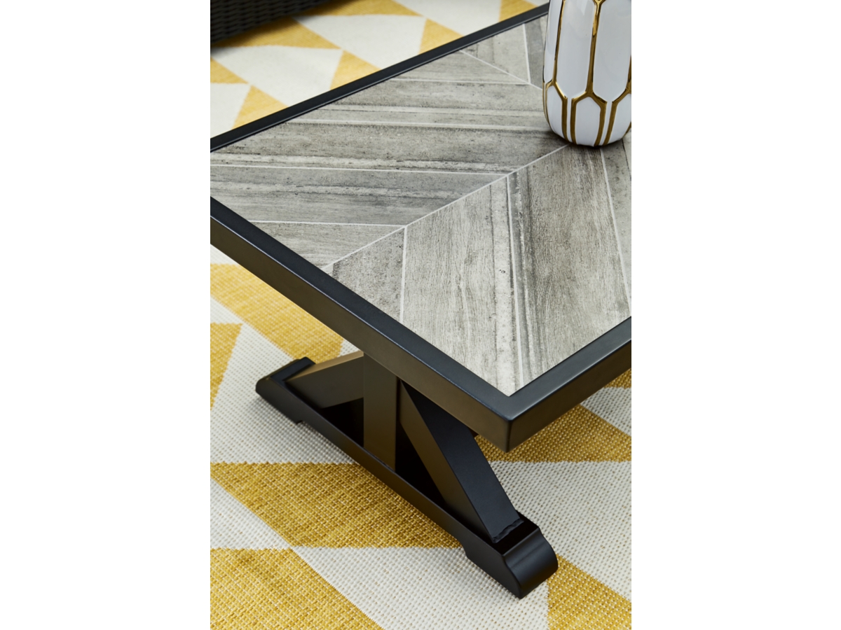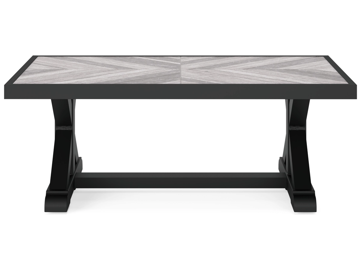 Sporting an easy-on-the-eyes elegance, the Beachcroft coffee table elevates the art of alfresco living. Beautiful and durable enough for indoor and outdoor use, this high-style/low-maintenance table charms with X-leg farmhouse styling. With a unique reverse diamond tile pattern, the thick porcelain tabletop provides unparalleled sophistication.