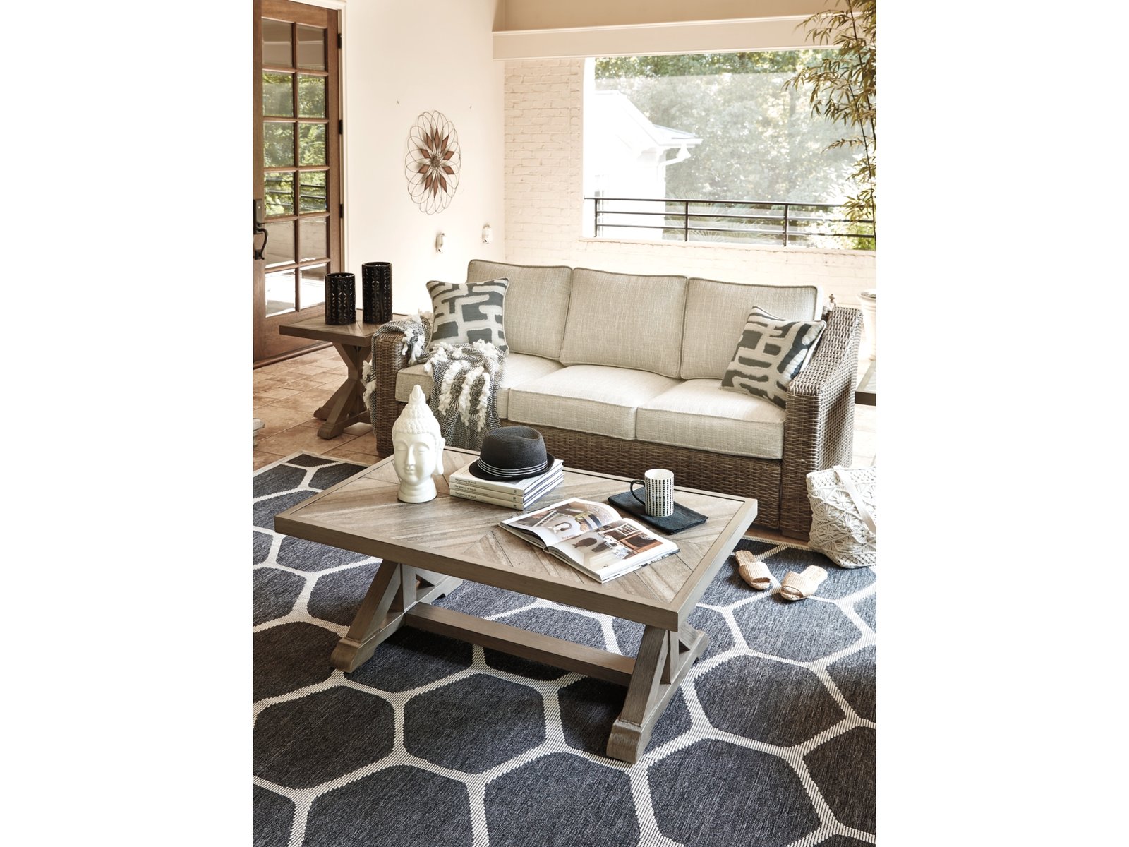 Sporting an easy-on-the-eyes look inspired by driftwood, the Beachcroft sofa elevates the art of alfresco living. Beautiful and durable enough for indoor and outdoor use, this high-style/low-maintenance seating entices with plush, removable cushions wrapped in Nuvella® fabric that’s a breeze to keep clean.