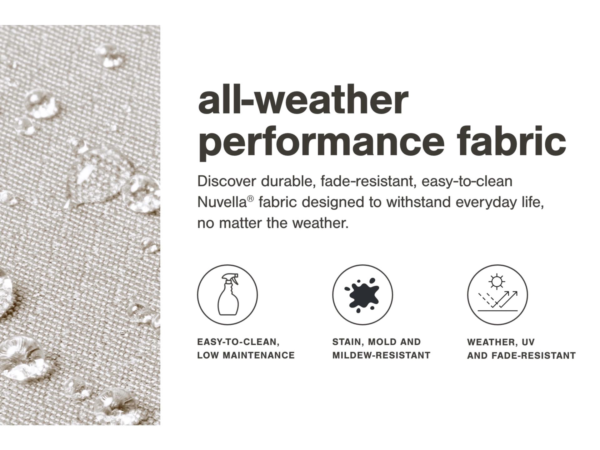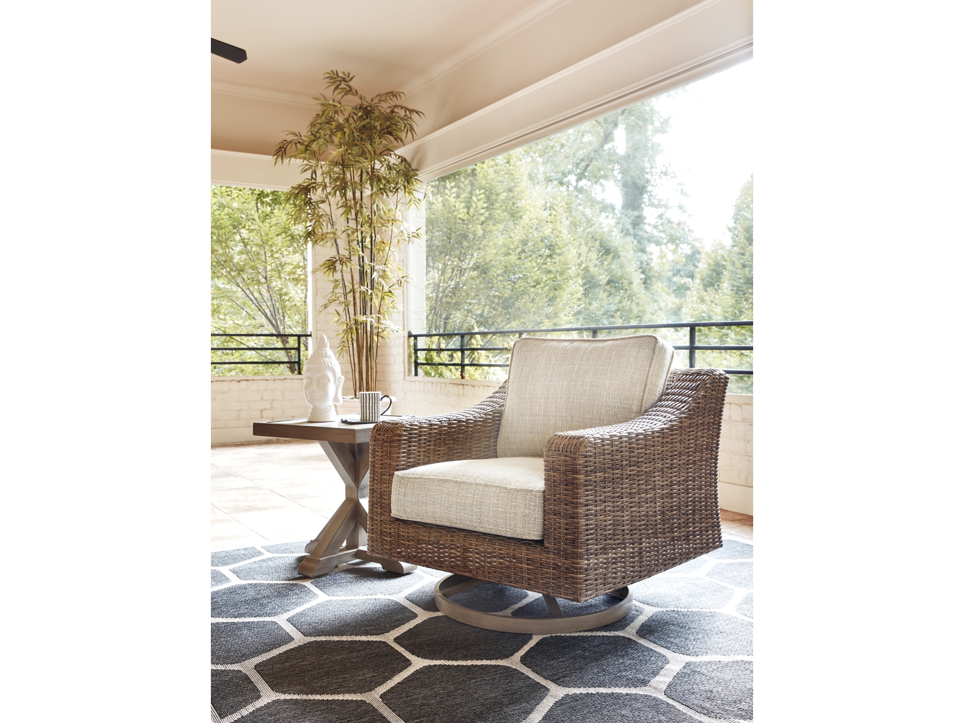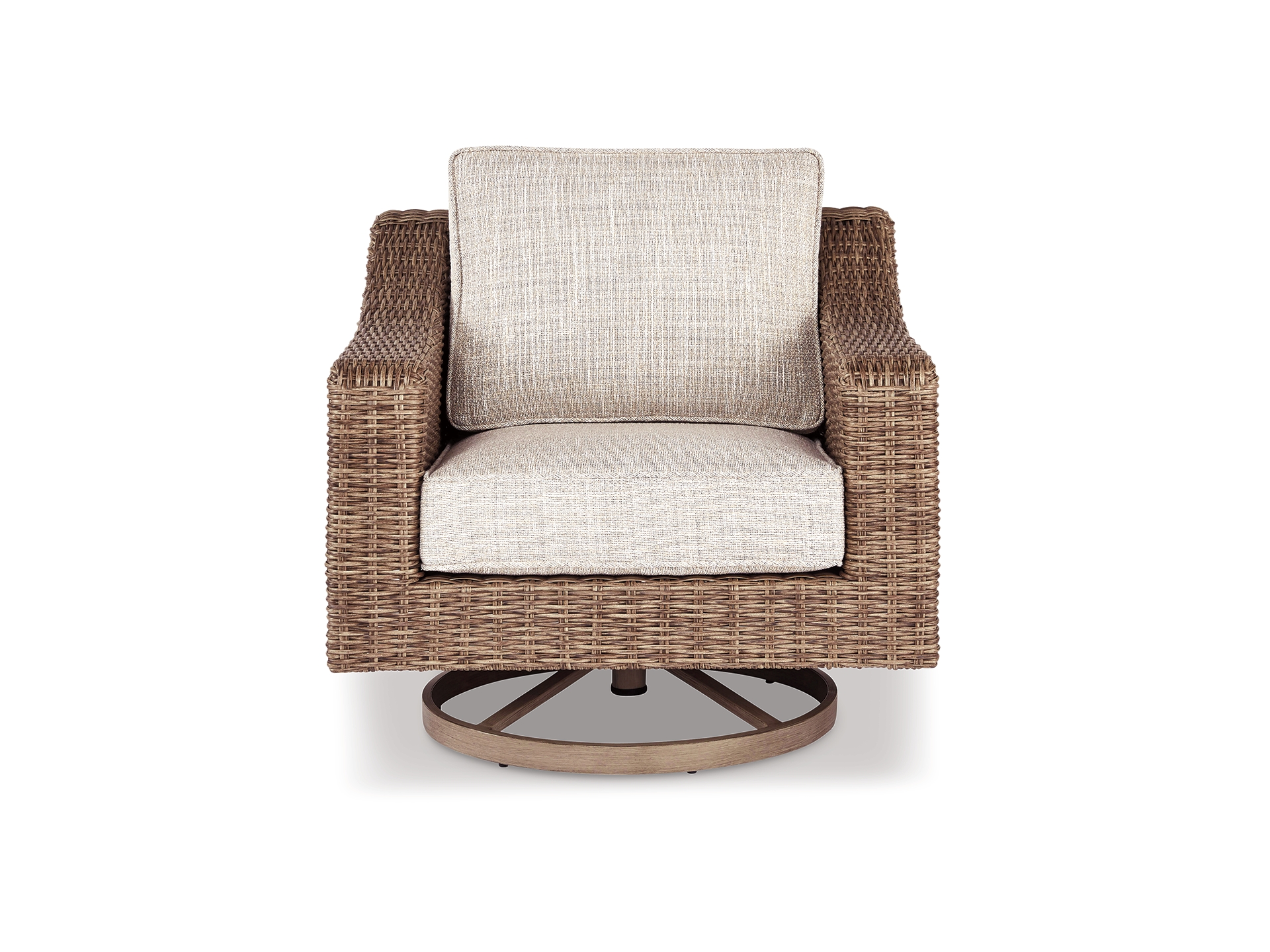 Sporting an easy-on-the-eyes look inspired by driftwood, the Beachcroft swivel lounge chair elevates the art of alfresco living. Beautiful and durable enough for indoor and outdoor use, this high-style/low-maintenance chair entices with plush, removable cushions wrapped in Nuvella® fabric that’s a breeze to keep clean.