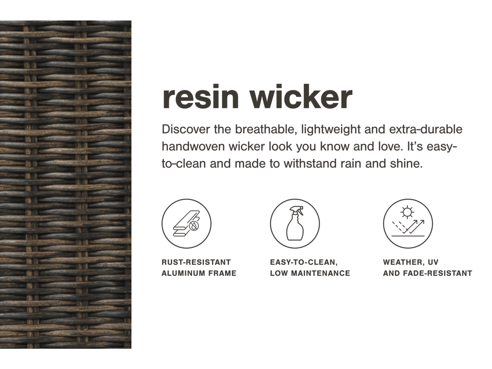 All-weather resin wicker handwoven over powder coated rust-proof aluminum frame