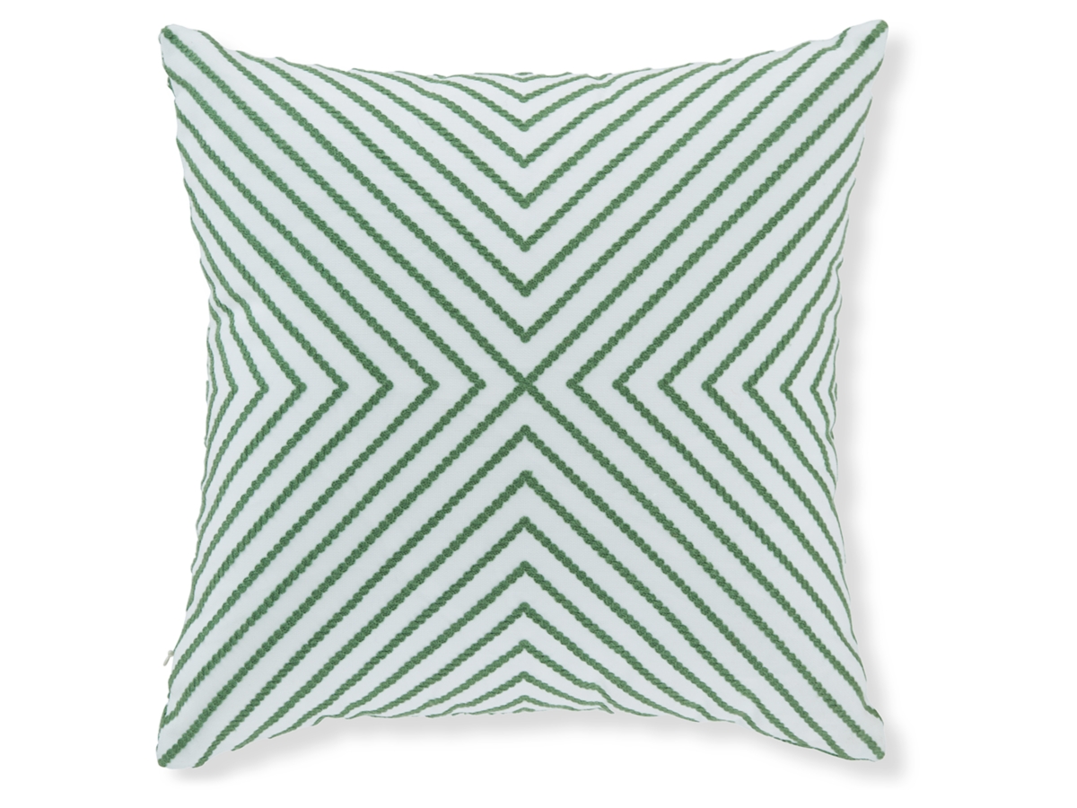 Add a splash of vibrant color and radiant style to your furnishings with the Bellvale accent pillow. Its diamond design in green and white adds an eye-catching scheme to indoor/outdoor benches, chairs and sofas.