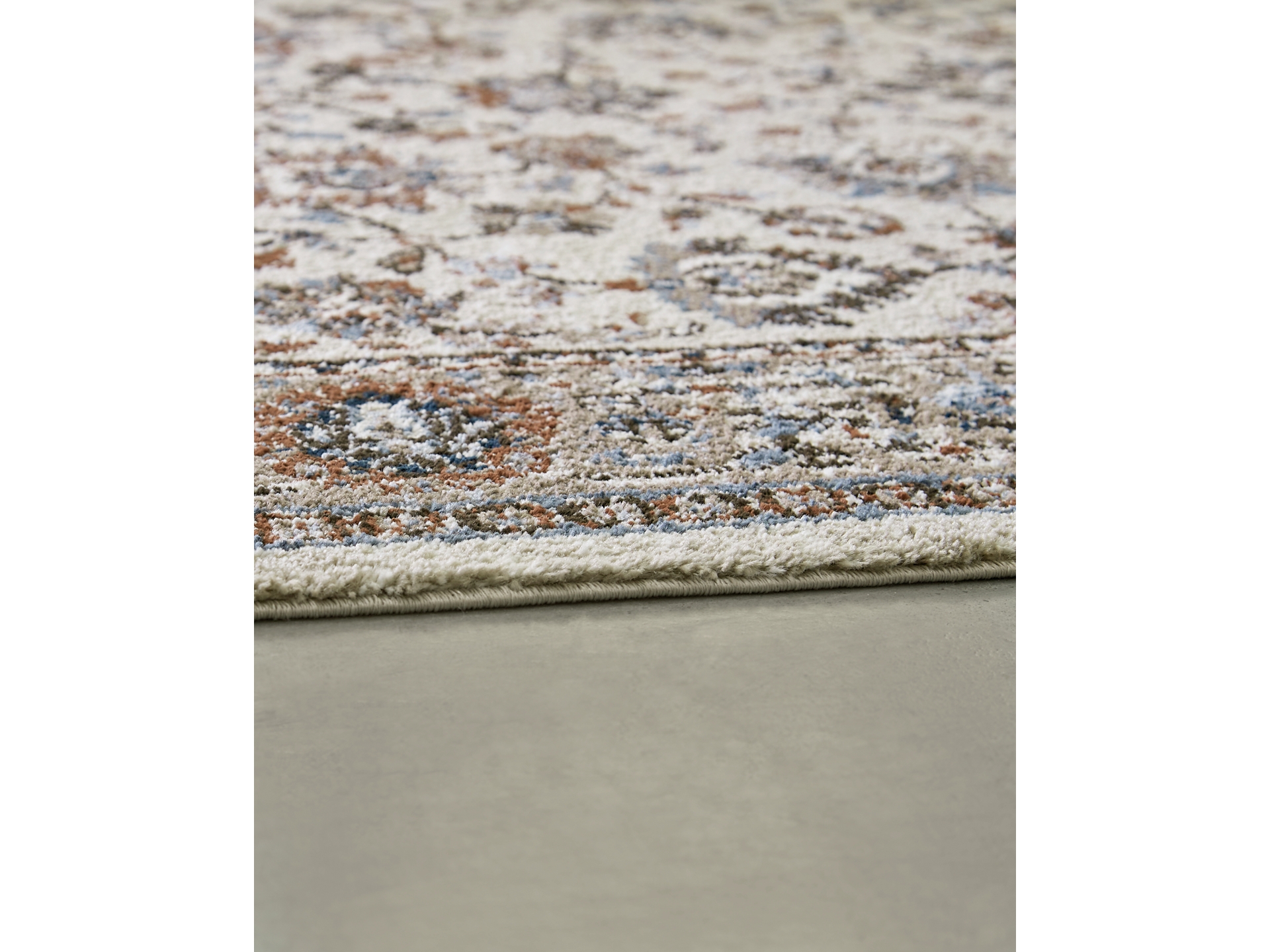The muted tones and floral pattern of the Beritham rug lend classic character to your living space. Its traditional feel is made more modern with shades of blue, brown, rust and cream. Timelessly designed, it helps you to craft your ideal aesthetic from the ground up.