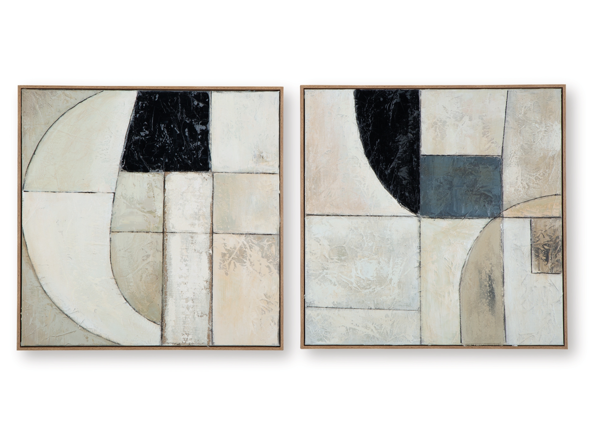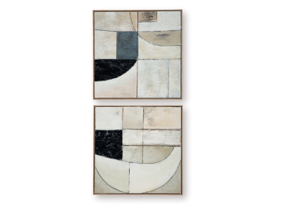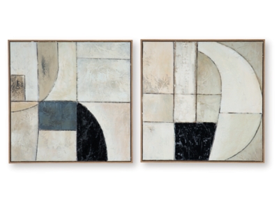Become captivated by the abstract movement of the Bexlen wall art set. With warm neutrals coming together in geometric harmony, this hand painted duo defines your decor with visual intrigue. Layered fabric embellishments elevate the look and feel.