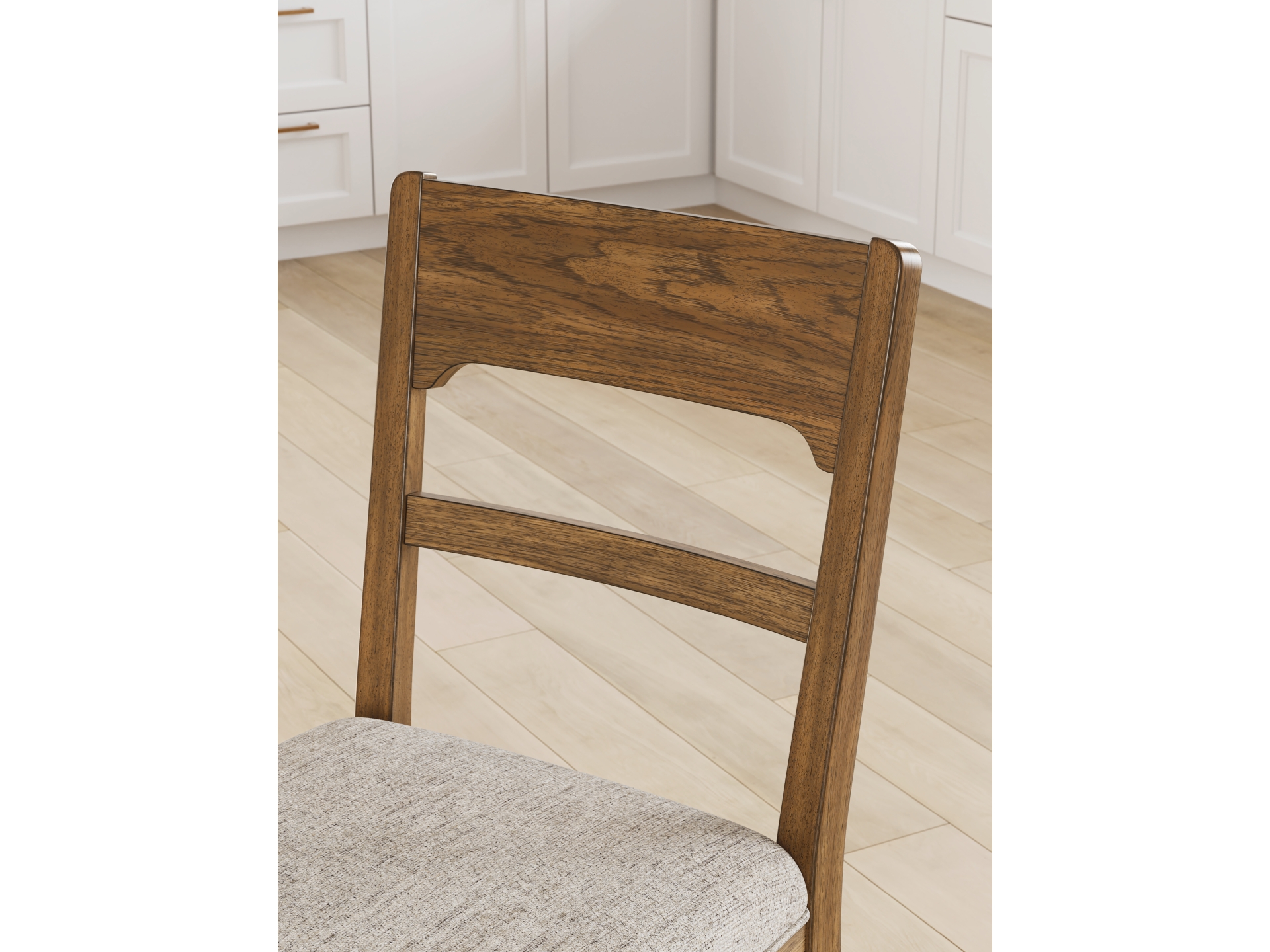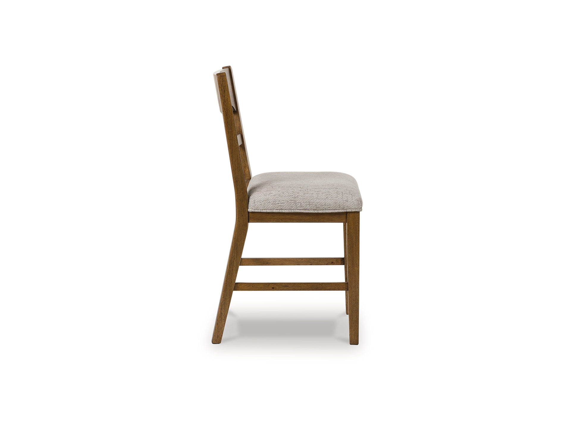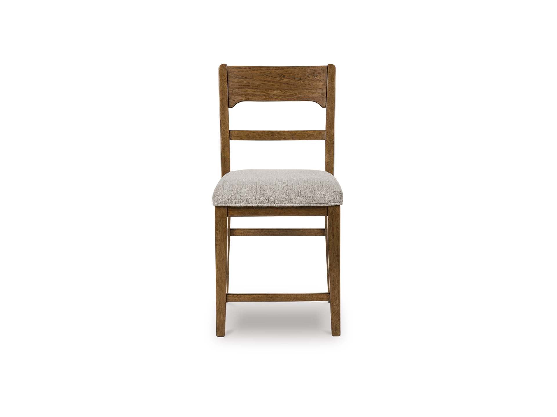 The Cabalynn counter height bar stool sits comfortably at the intersection of modern lodge and farmhouse aesthetics. Your warm and welcoming disposition is reflected in the charming architectural elements and neutral textural fabric. Even with its poise, the stool remains practical. Its cushioned seat invites you to linger longer at the table, defining your dining room with reliable function and style.