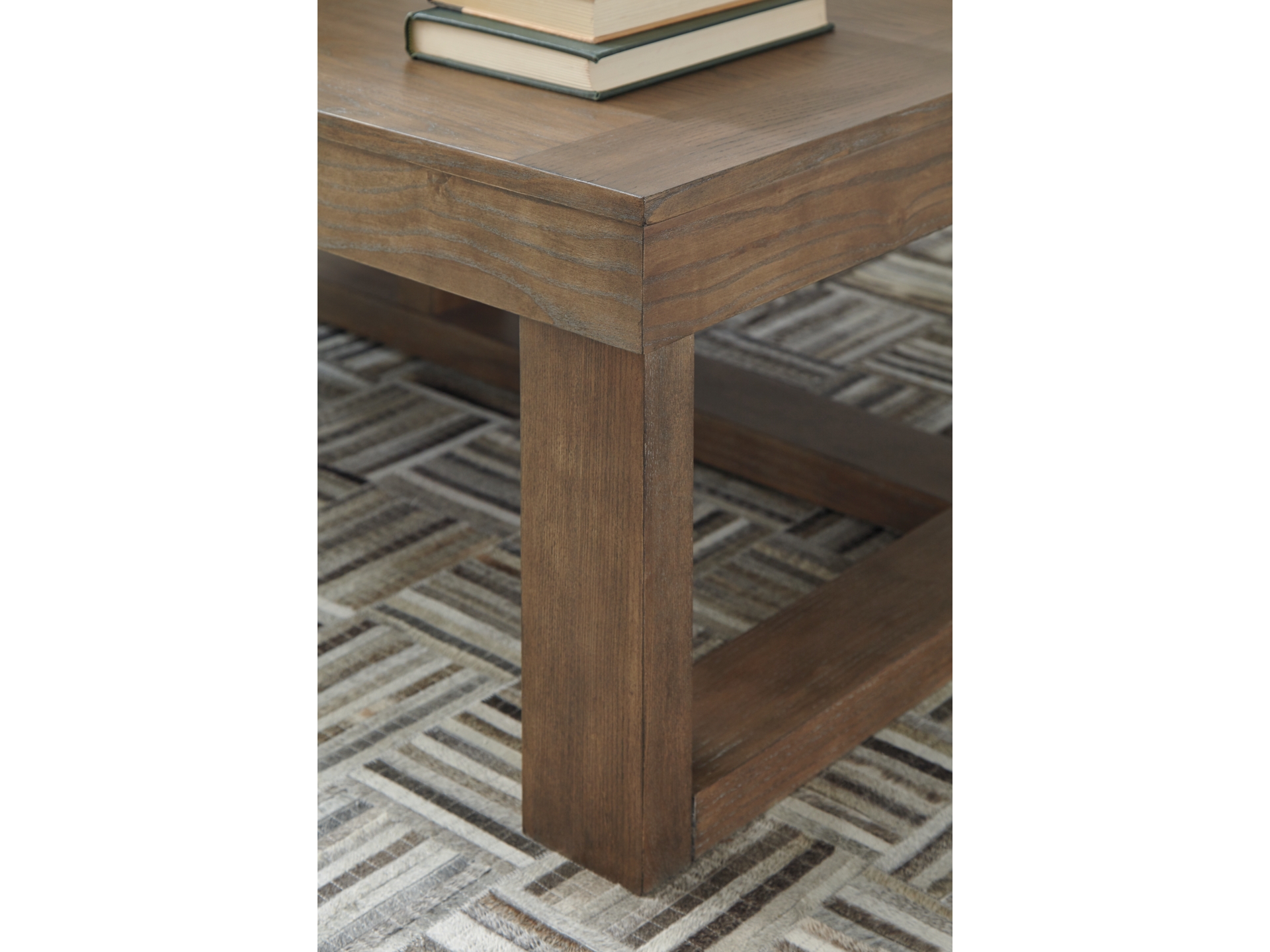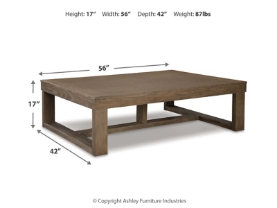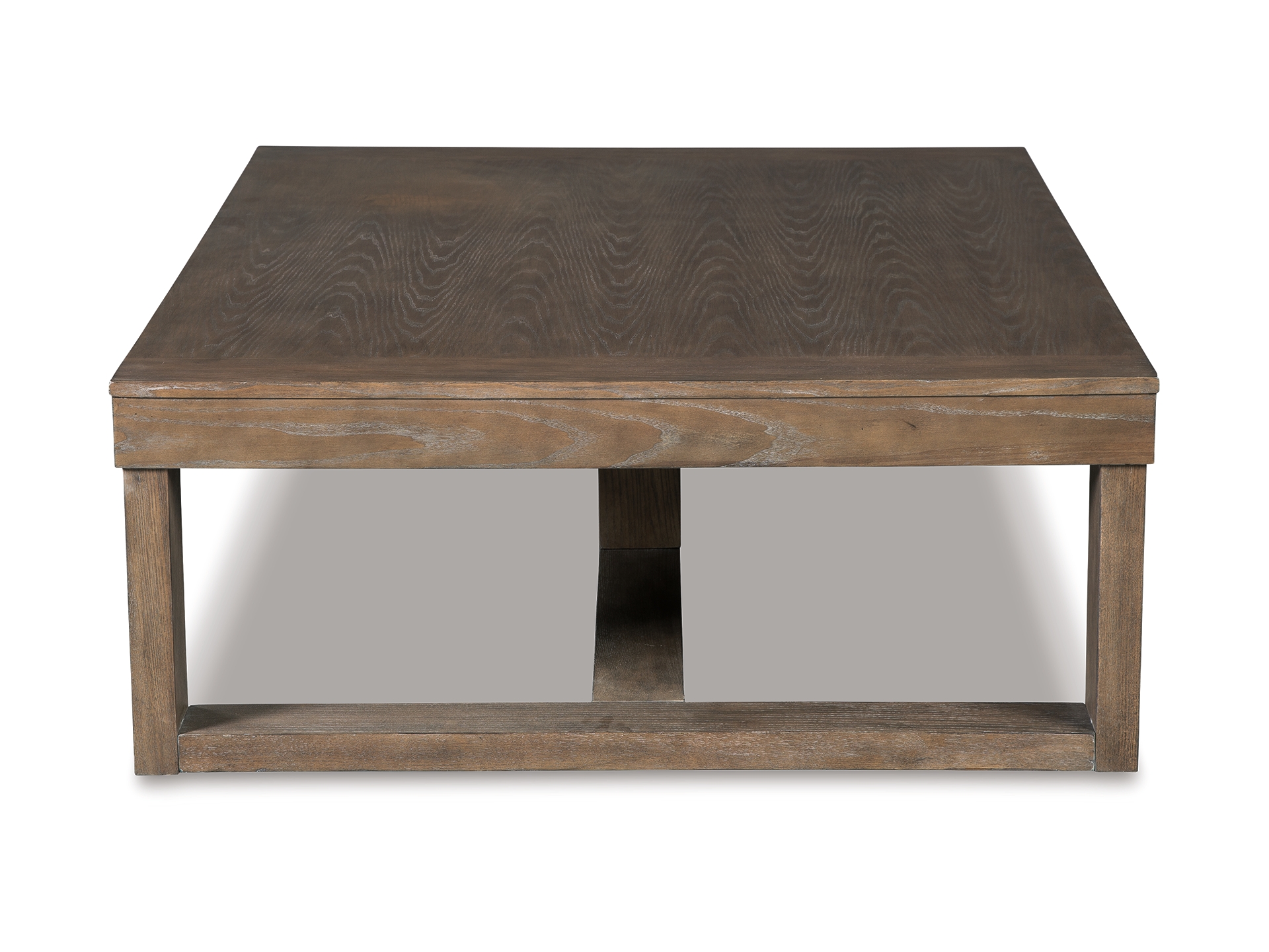 Oversized yet far from overdone, the Cariton coffee table masters the art of simplicity. Bold, blocky profile is enriched with plank-effect styling and a textured grayish brown finish for a look that’s cool and contemporary and a vibe that’s warm and inviting. Its generous scale makes it a natural complement for spacious sectionals.