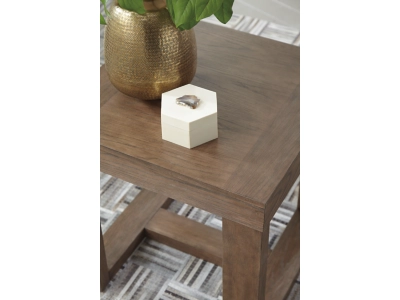 The Cariton end table makes it hip to be square. Bold, blocky profile is enriched with plank-effect styling and a textured grayish brown finish for a look that’s cool and contemporary and a vibe that’s warm and inviting.