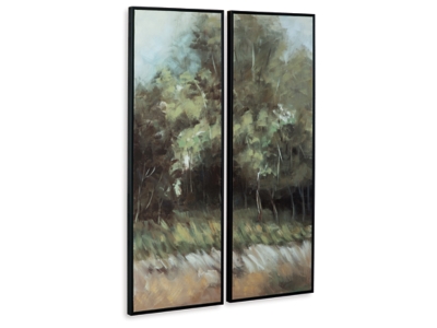 Double down on natural beauty with a stunning treescape. The Dansot wall art set brings the outdoors in, showcasing a whimsical wooded scene in green, brown, blue and white. Ideal for modern farmhouse or casual interiors, it grounds your decor with its intricate interpretation of nature.