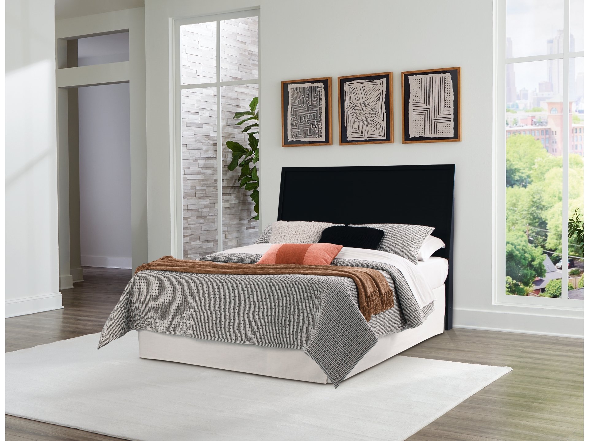 Sophisticated style for the savvy shopper. The Danziar panel headboard prioritizes affordable, on-trend design. Its subtle replicated texture recalls the natural beauty of wood, highlighting the clean-lined form. And a matte black finish savvily suits different approaches to modern aesthetics. Mix and match with light and bright hues, or pair with other dark tones for a moody look.