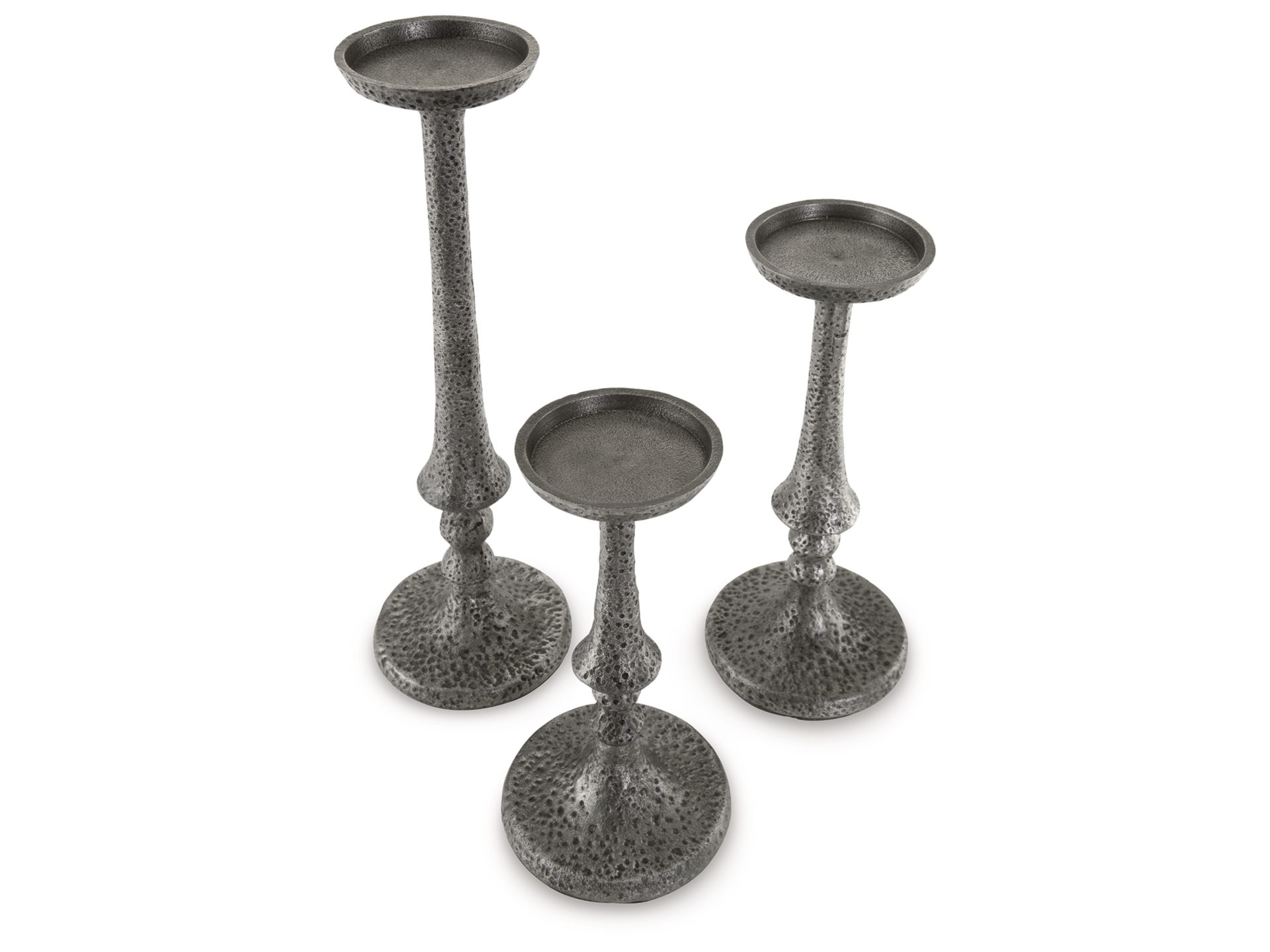 Is your ideal air of ambiance filled with antiqued flair? We invite you to tap into the plentiful possibilities of the Eravell candle holders. Scatter the set across shelves in your in-home library or office as a moody backdrop for your next illuminating idea. Or group them together on a living room coffee table—they’re an impactful industrial accent.