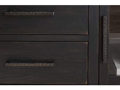 The Galliden TV stand brings a rustic vibe to urban contemporary design. It’s a modern approach to natural beauty, with the worn black finish giving your living room a gently aged charm. Console and media storage is made easy with cabinets and drawers. And the stunning simplicity of its color palette allows you to seamlessly coordinate this TV stand with your existing decor.