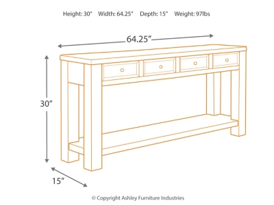 Inspired by the sheer simplicity and weatherworn beauty of primitive furniture, Gavelston sofa table brings a relaxed sense of style into your space. Show off accent pieces on the bottom shelf, while concealing whatnots in the handy drawers.