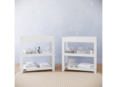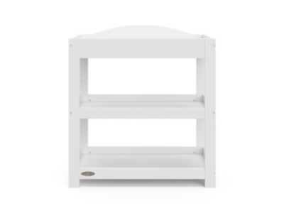 Customize your nursery by choosing between a classic or modern design, introducing the Graco Customizable Changing Table with Bonus Water-Resistant Changing Pad. While the Graco Customizable Changing Table is designed to match perfectly with any Graco crib, its easy-to-match design makes the Graco Customizable Changing Table easy to pair with any brand or style of crib. With its ability to be assembled with either a modern, flat headboard or classic, arched headboard, the Graco Customizable Changing Table with Bonus Water-Resistant Changing Pad features 2 open storage shelves to store your nursery and changing essentials. Also, the changing table includes a bonus water-resistant baby changing pad with safety strap. The Graco Customizable Changing Table is crafted from wood composites, laminated with a durable, easy-to-clean melamine coated surface, and its applied finish has been tested to meet or exceed the applicable ASTM and CPSIA safety standards. Also, like all Graco changing tables, the Graco Customizable Changing Table is JPMA Certified, meaning it’s been expert tested to meet or exceed all applicable category voluntary and mandatory safety standards. Graco is the proud recipient of the Parent Tested Parent Approved (PTPA) Seal of Approval for nursery and children’s bedroom furniture, and the 2023 Women’s Choice Award for 9 out of 10 Recommended Baby & Kids Furniture. Backed by a 1-year limited manufacturer’s warranty. Assembly required.