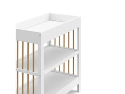 Easy-to-match design, timeless style, and storage shelves to help keep your nursery organized — introducing the Graco Teddi Changing Table with Bonus Water-Resistant Changing Pad. While the Graco Teddi Changing Table is designed to match perfectly with the Graco Teddi 5-in-1 Convertible Crib with Drawer, its easy-to-match design makes the Teddi easy to pair with any brand or style of crib. Combining modern style with convenient nursery storage, the Graco Teddi Changing Table with Bonus Water-Resistant Changing Pad features 2 open storage shelves to store your nursery and changing essentials. Also, the Teddi includes a bonus water-resistant baby changing pad with safety strap. The Teddi is crafted from pine wood, pine wood dowels, wood composites, and its applied finish has been tested to meet or exceed the applicable ASTM and CPSIA safety standards. Also, like all Graco changing tables, the Teddi is JPMA Certified — meaning it’s been expert tested to meet or exceed all applicable category voluntary and mandatory safety standards. Graco is the proud recipient of the Parent Tested Parent Approved (PTPA) Seal of Approval for nursery and children’s bedroom furniture, and the 2023 Women’s Choice Award for 9 out of 10 Recommended Baby & Kids Furniture. Backed by a 1-year limited manufacturer’s warranty. Assembly required.