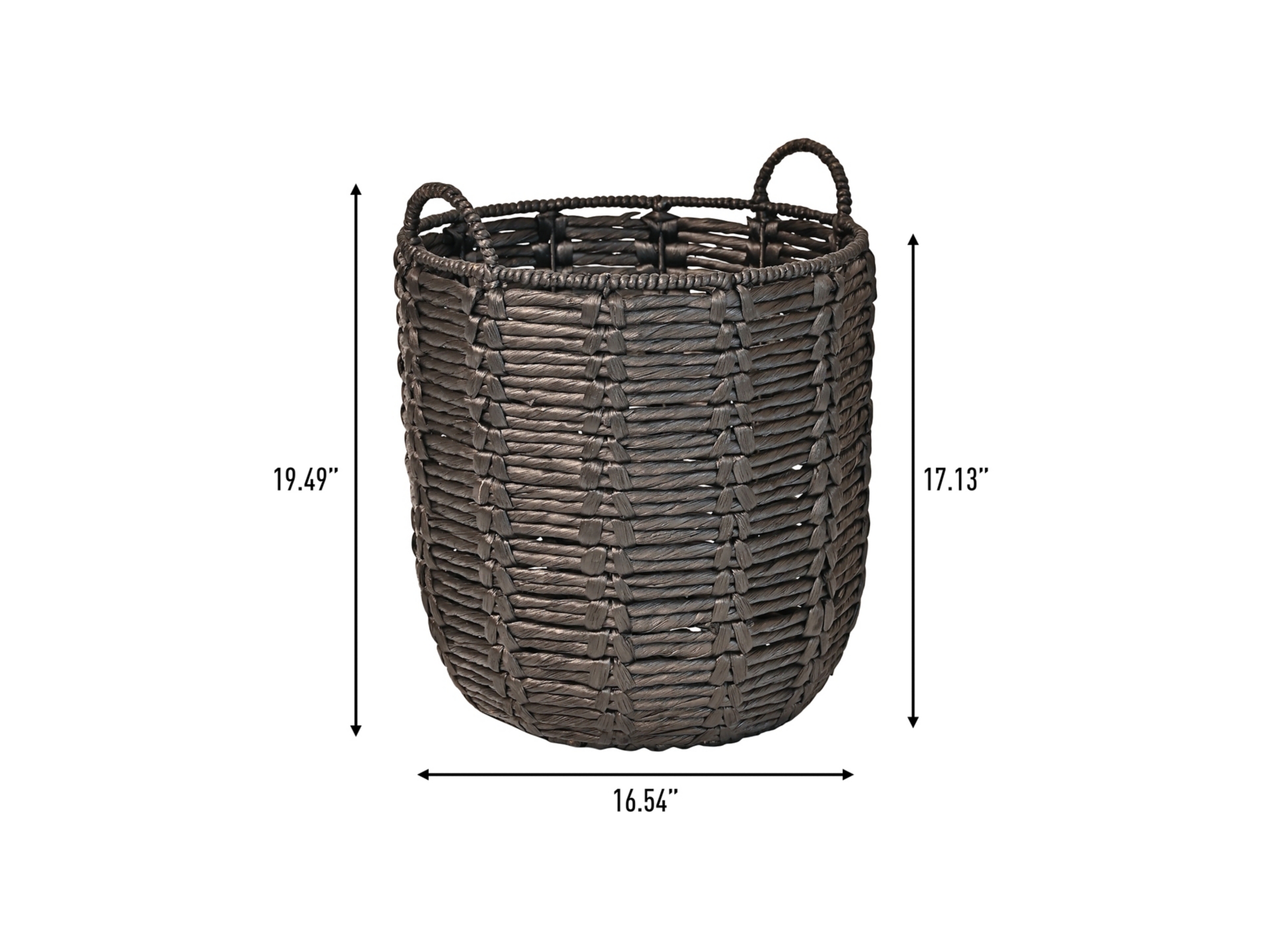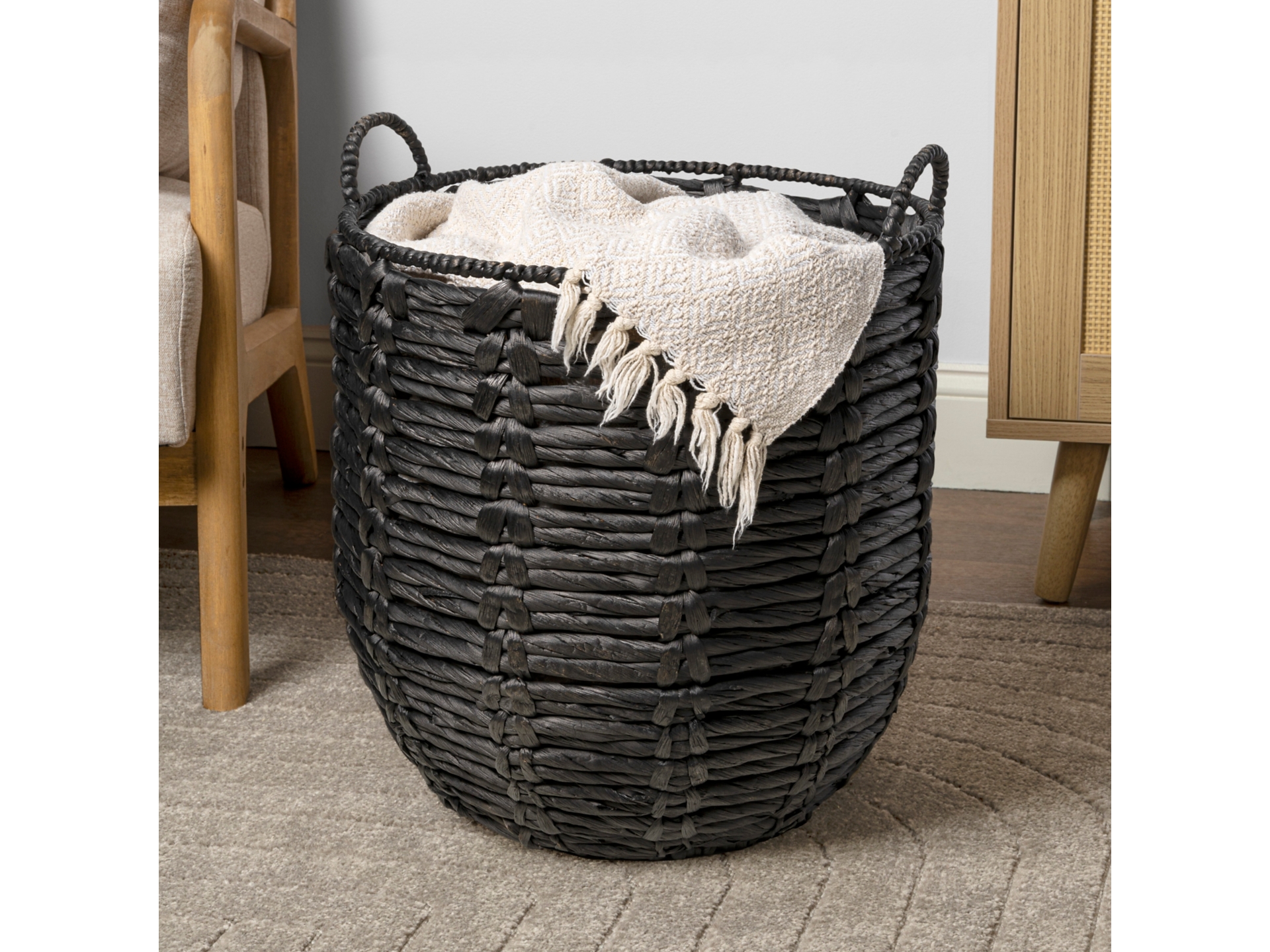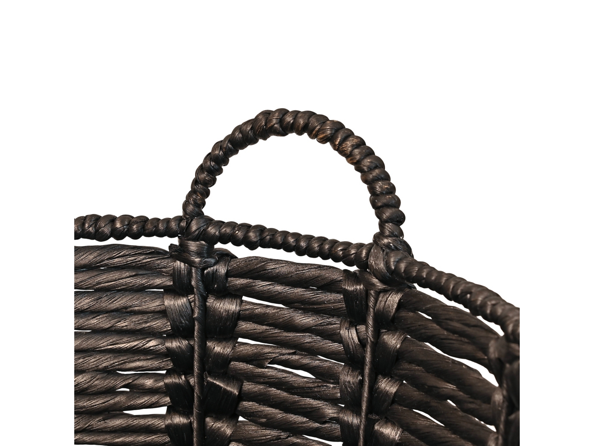 With the black coloring of woven fibers, this basket is the perfect neutral addition to any bohemian home; crafted by artisans, the color can be slightly different than shown