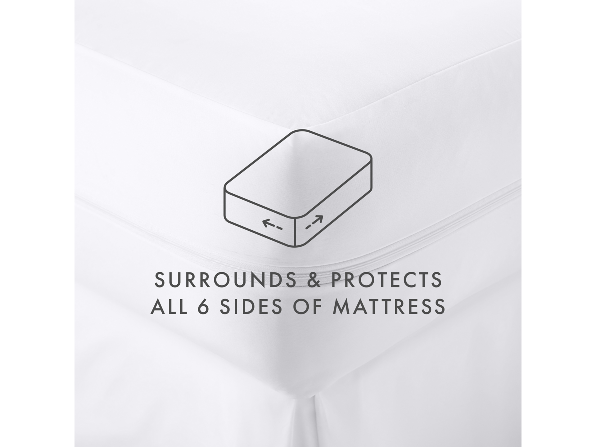 • Surrounds and protects the mattress on all 6-sides against allergens, dust mites, bed bugs, bacteria, fluids, perspiration and urine