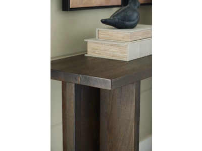 The clean-cut profile of the Jalenry console table works equally well in casual and contemporary settings. Made of solid wood, its lightly sandblasted effect lends a trend-right vibe, while the legs add dimensional flair. Dress up this piece with decor on the shelf to suit your style needs.