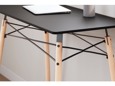 A contemporary take on a classic look, the Jaspeni home office desk adds a touch of artistic flair to your at-home work experience. It’s designed with small space living in mind, and is perfect for small apartments and dorms. With its painted black top, black metal framework and wood legs, this rectangular desk is intricately eye-catching, allowing you to work in style.