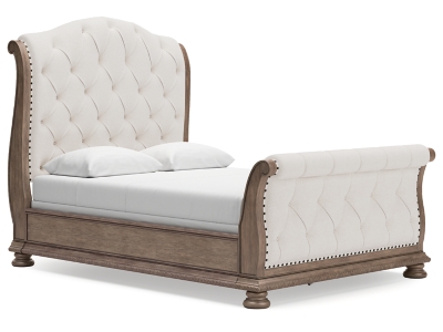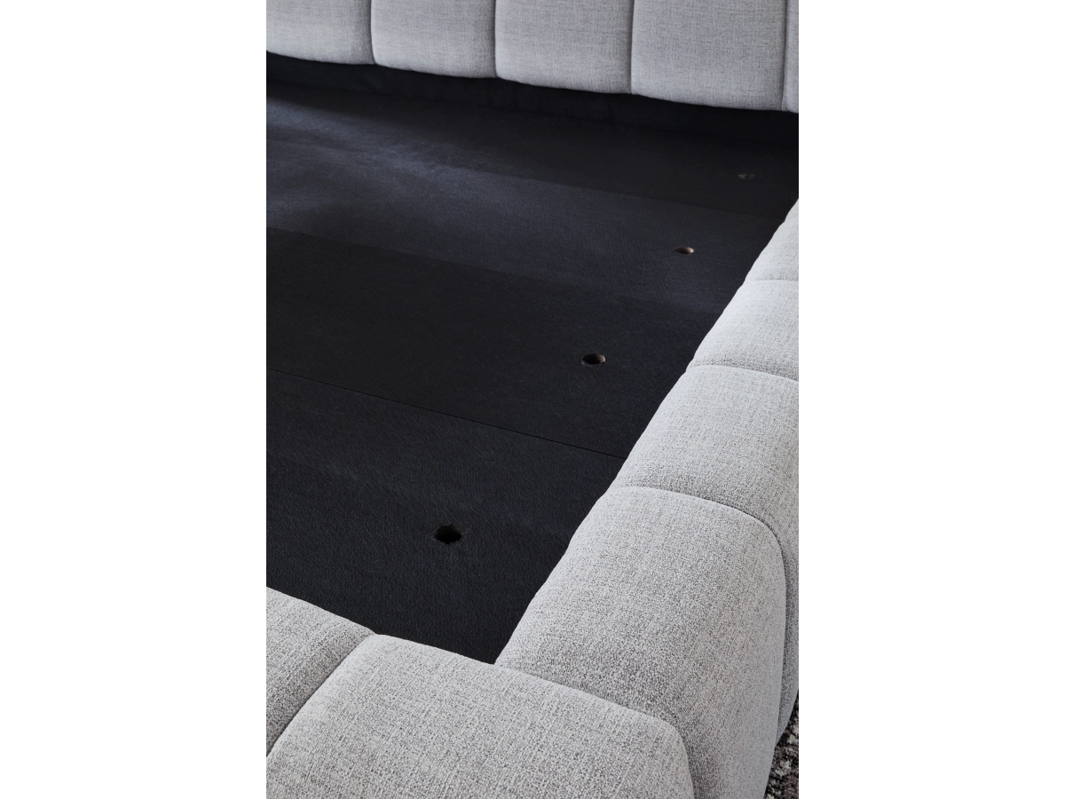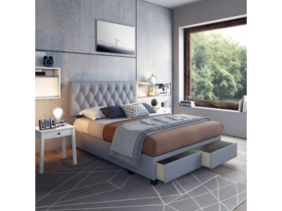 - Upholstered headboard, footboard, bunkie board, and rails