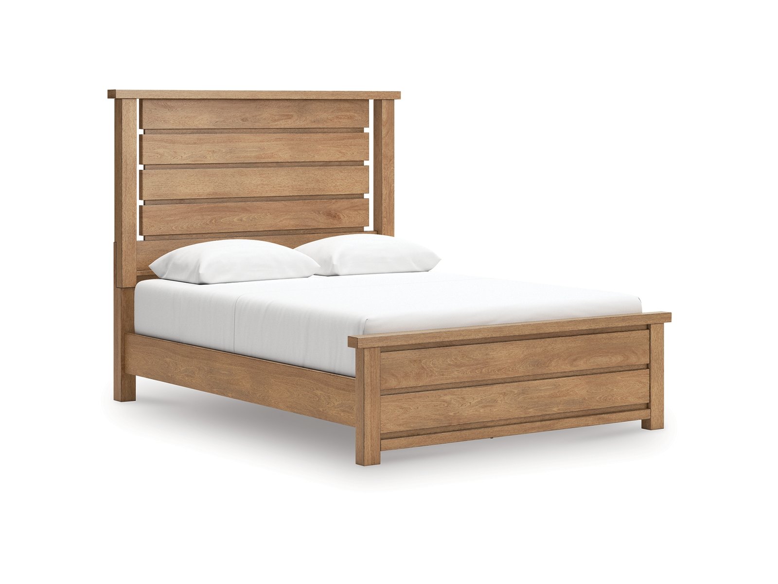 Includes panel headboard, rails and footboard with slats