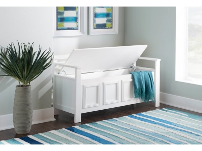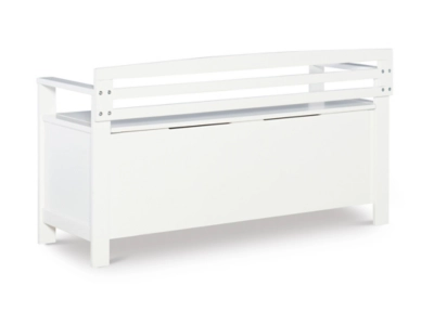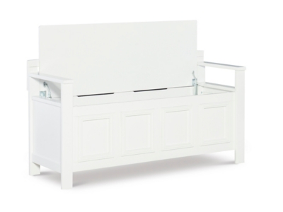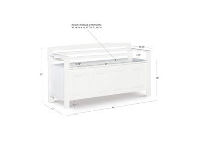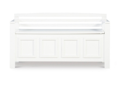 Create added seating and storage to your foyer or mudroom with this attractive and functional laredo storage bench. The bench features a flip top lid, allowing the user to easily retrieve articles from the storage compartment. The ladder designed back and decorative front are enhanced by the white finish. A stylish and functional addition to any home.