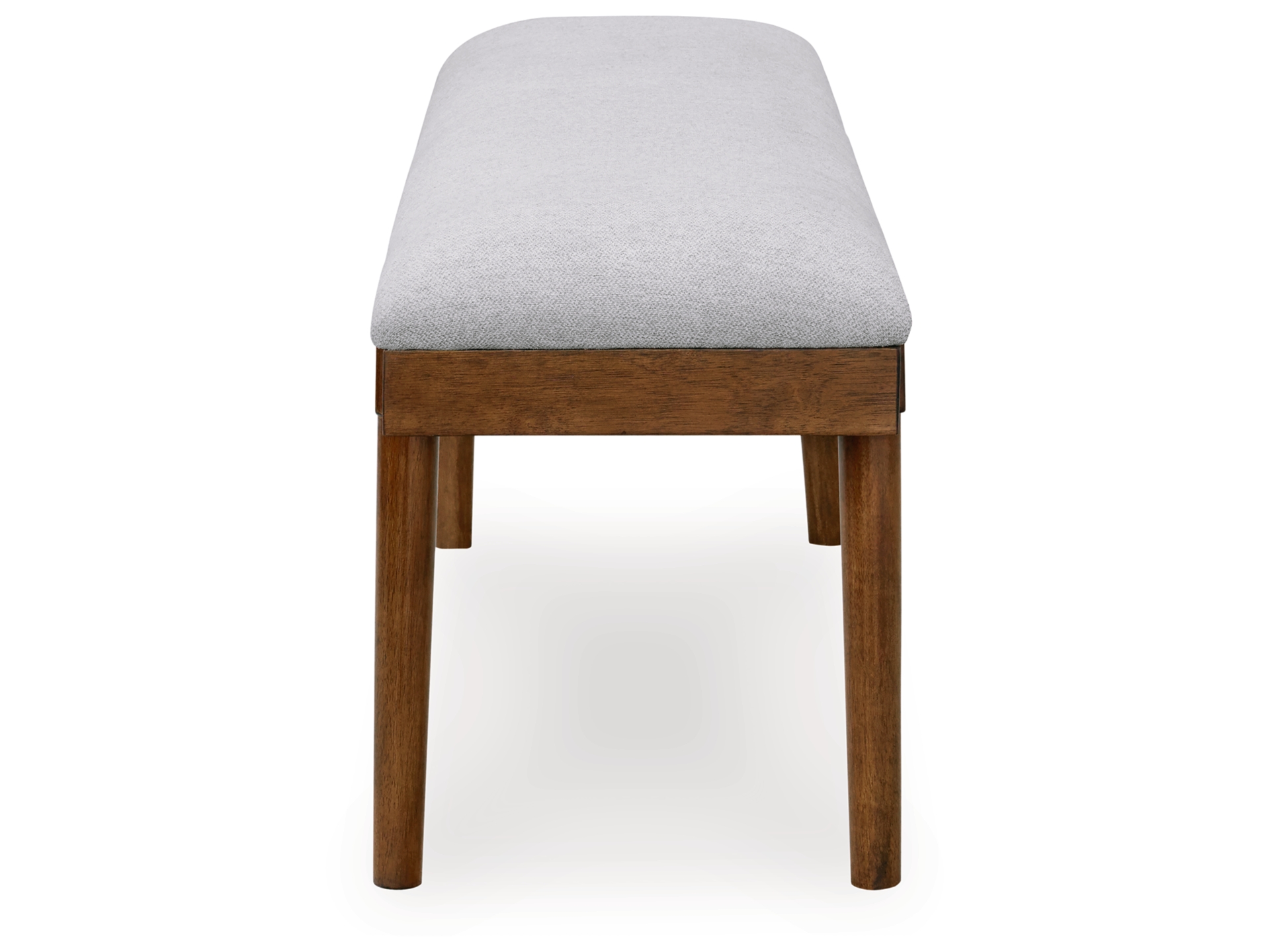 A refreshed take on retro aesthetics. The Lyncott upholstered bench adds an air of simplicity to your dining space, capturing the architectural language of mid-century stylings. Its seat invites the eye with a soft-edged silhouette and neutral gray cushion. A casual, yet timeless, finish on the frame creates visual contrast to complete this study in form and function.