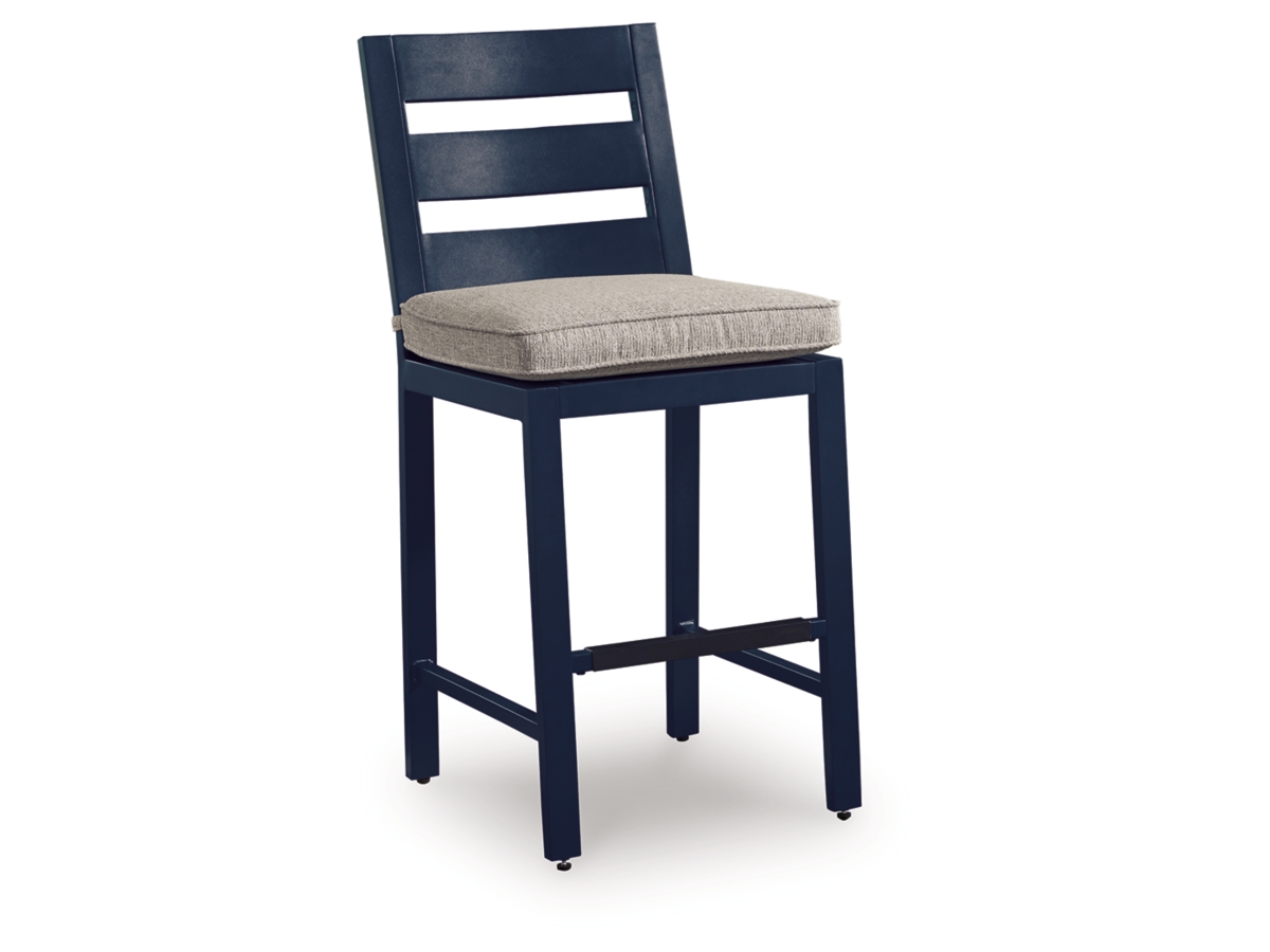 Easy-breezy beauty, made to withstand the elements. The Mabry Shores outdoor counter height bar stool makes a serene statement on your deck or patio with its soothing shade of blue. A cushioned seat keeps you comfy as you lounge. Crafted with durable materials for added longevity, it’s a smartly stylish addition to your outdoor oasis.