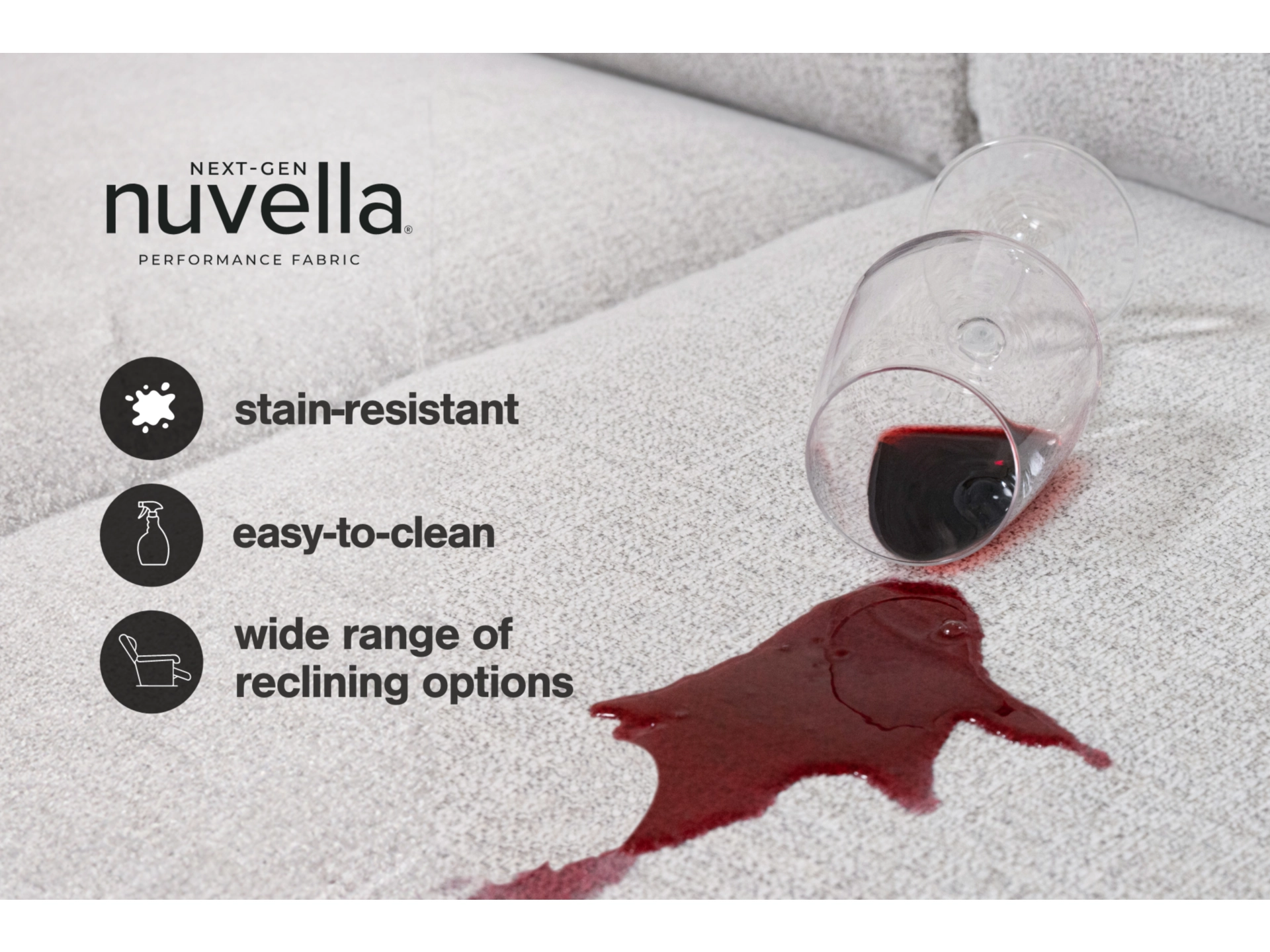 • Next-Gen Nuvella™ is a family-friendly fabric that is soft, easy to clean, stain-resistant and durable