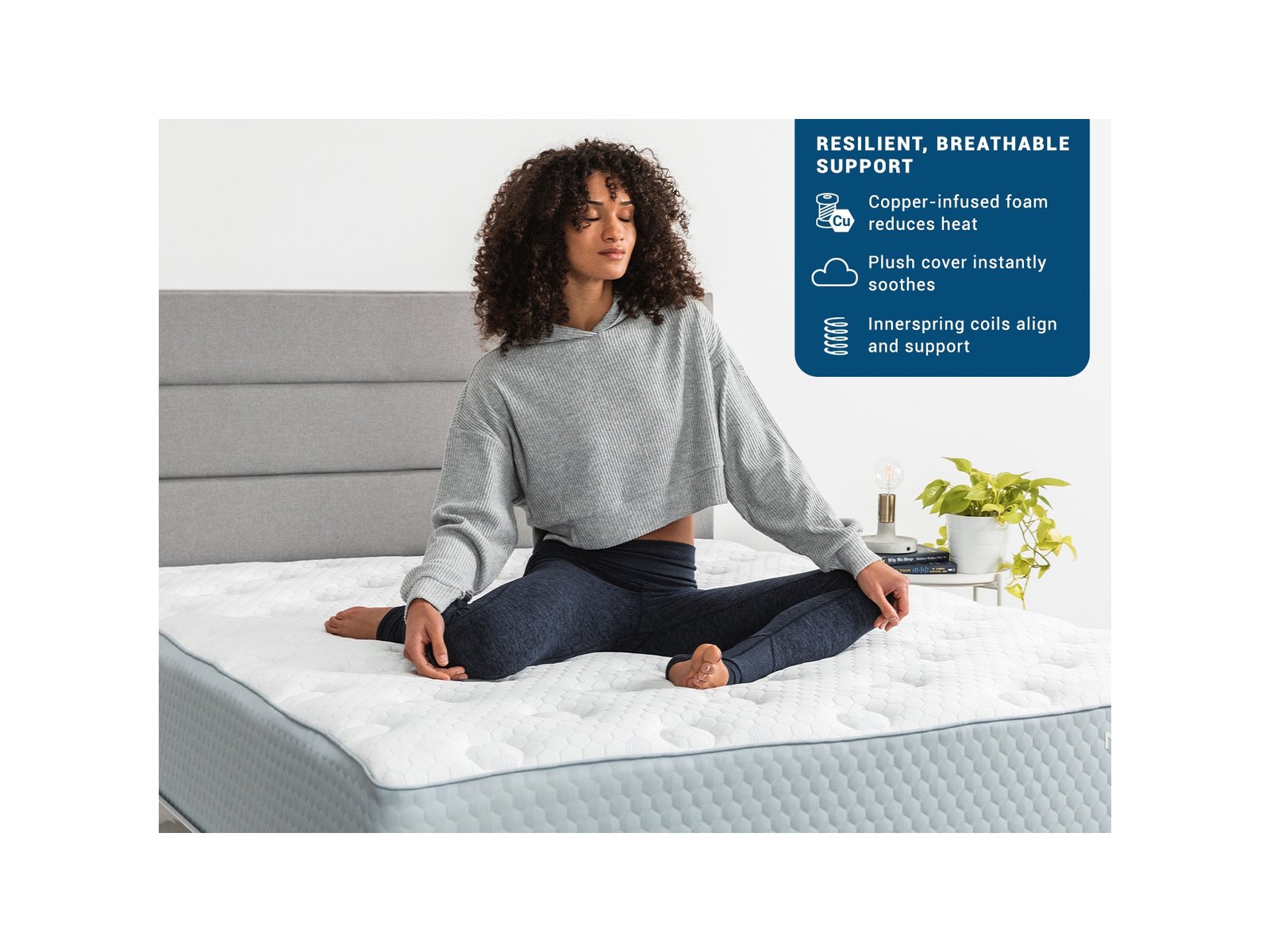 13 in. profile includes an individually wrapped coil system and copper-infused gel memory foam