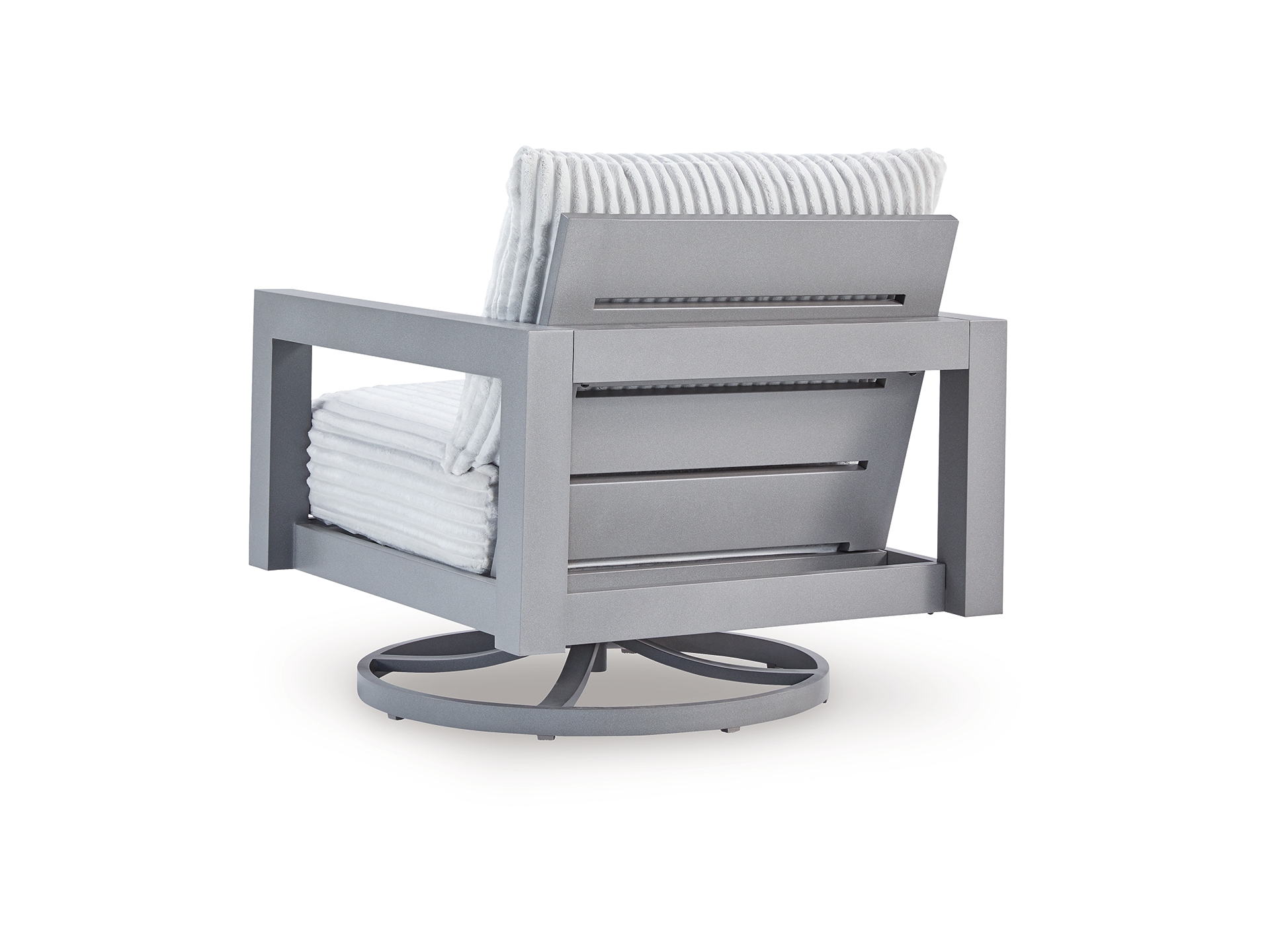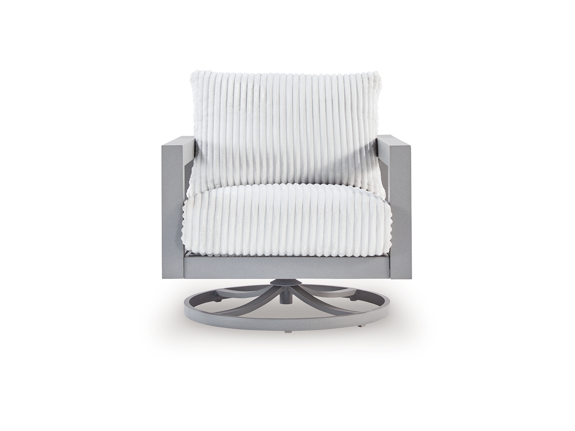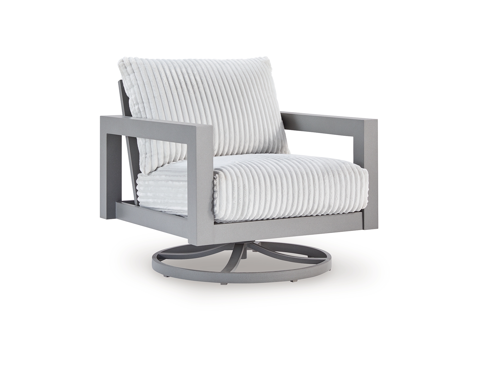Indulge in luxe outside living without sacrificing longevity. The Moonlight View outdoor swivel chair combines on-trend texture with a sleek aluminum frame. Soak up the sun poolside or on the porch—a 360-degree swivel allows you to effortlessly turn to chat with guests or look after the kids. And with cleanable, UV-resistant Nuvella® fabric in a showstopping corded look, style and durability go hand in hand.