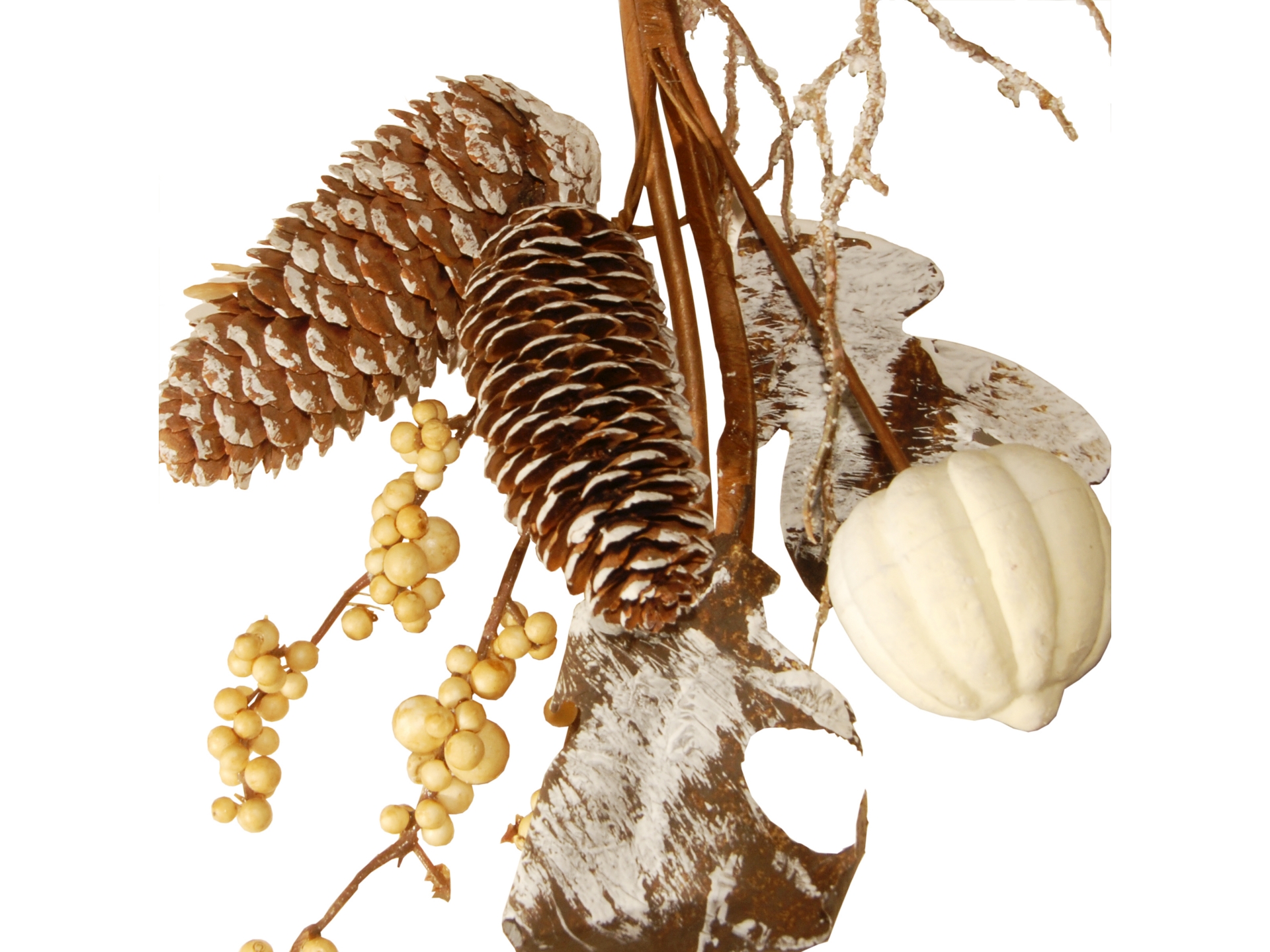 • Trimmed with leaves, gourds, berries and balls