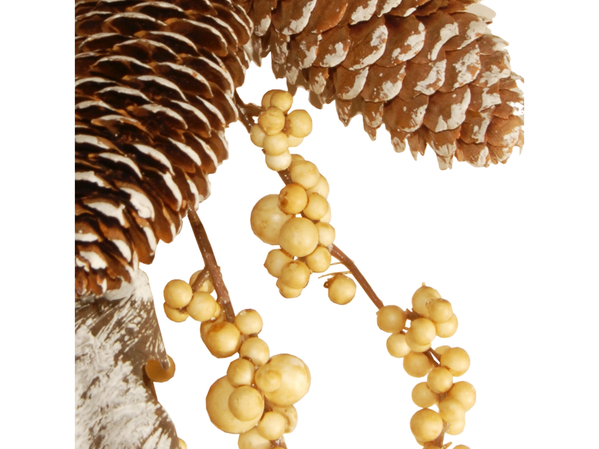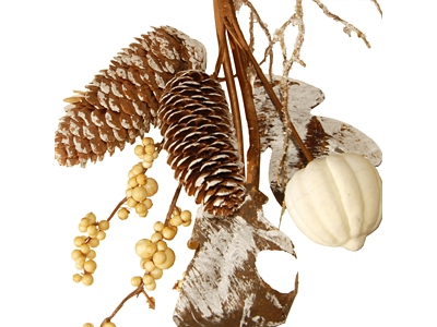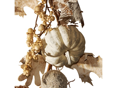 White-tipped pinecones and pale pumpkins spring from this long flexible vine. Mixed in are assorted shape gourds, leaves, berry clusters and ball ornaments in complementing colors. Display this unique autumn decoration over doors, windows, fireplace mantels, fence, or stairway railings, in indoor or covered outdoor locations.
