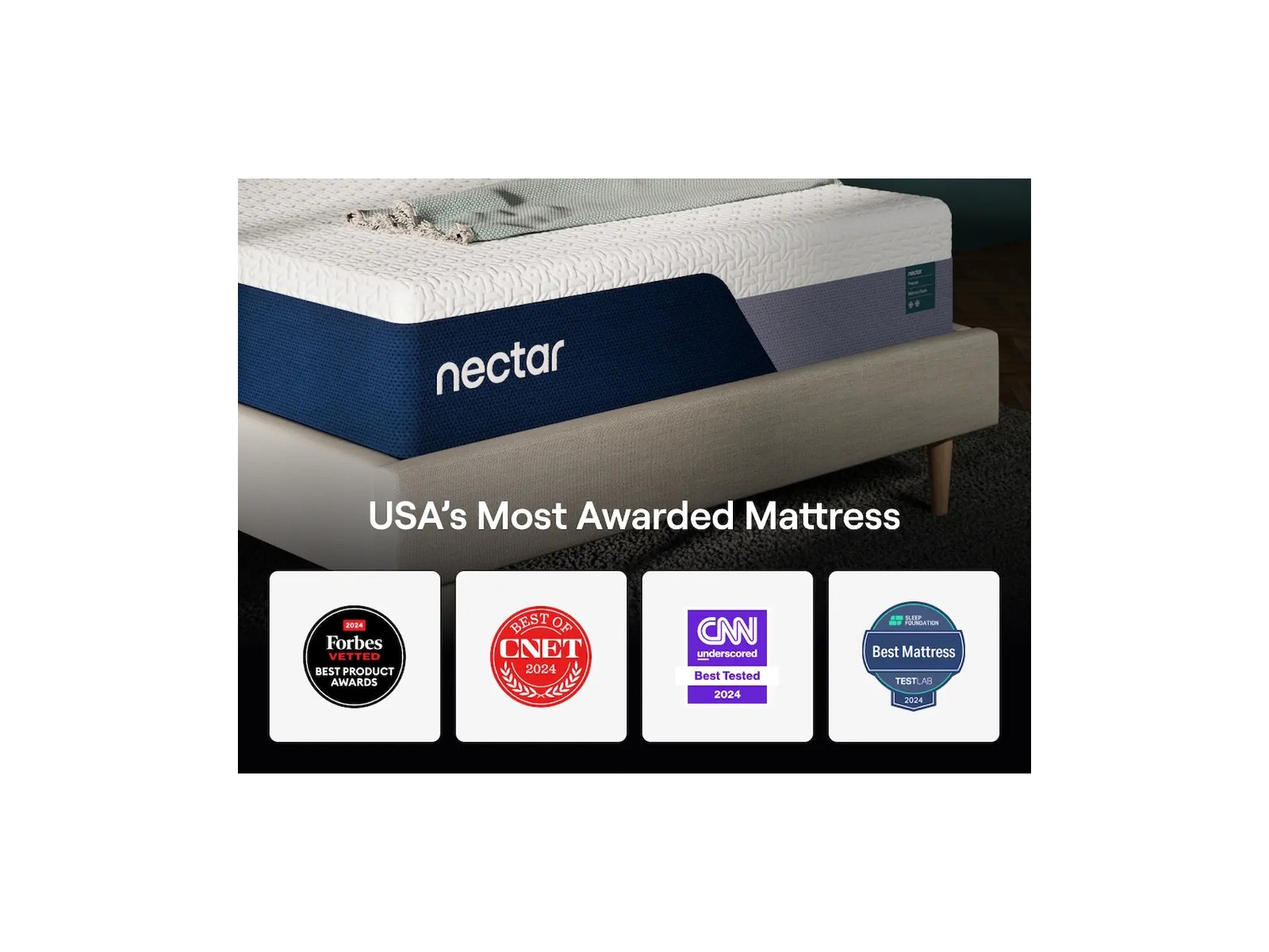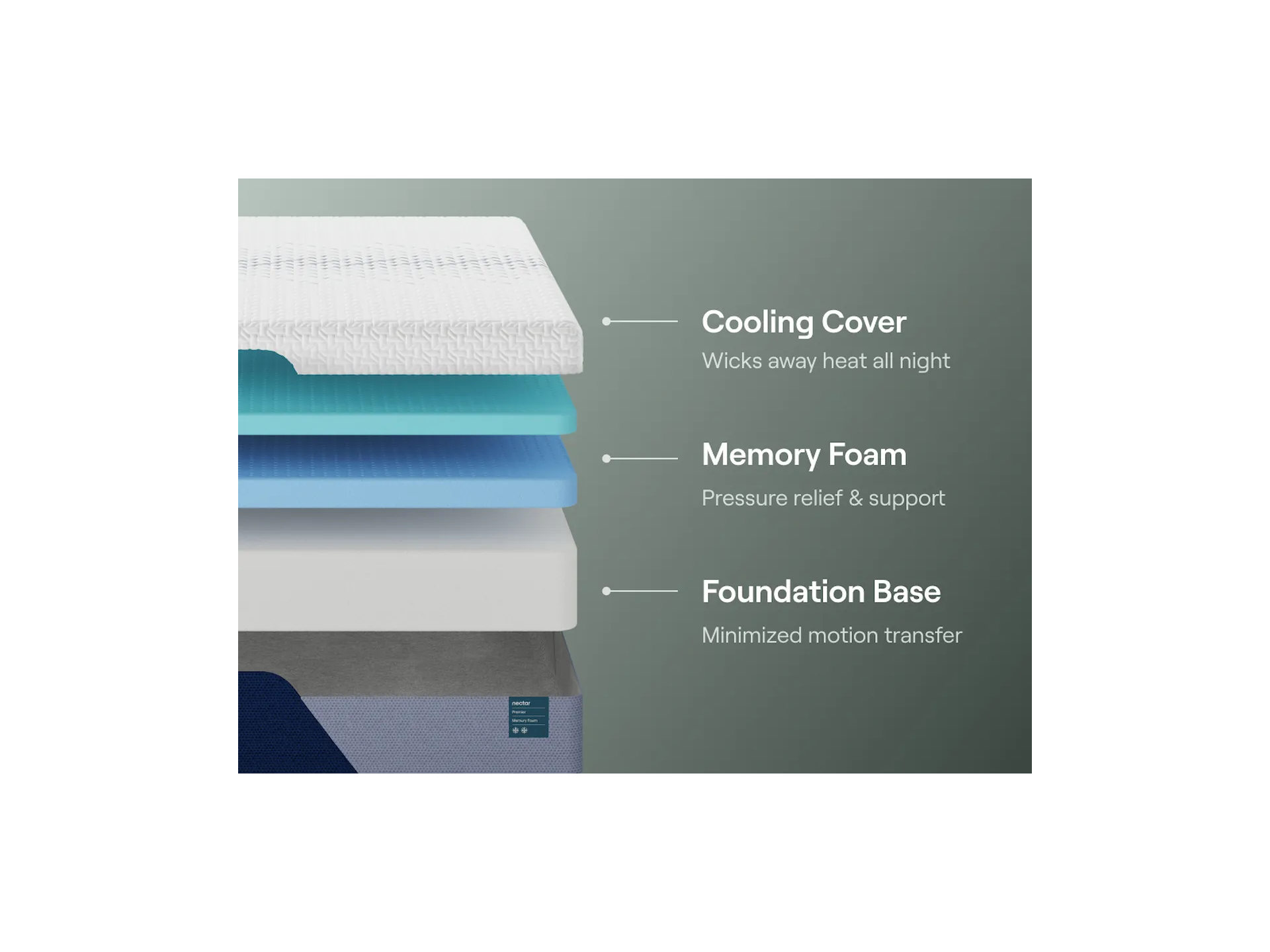 Meet the award-winning Nectar—the better mattress for better mornings. With multiple unique layers of sweet comfort and support, the Nectar Premier Memory Foam 5.1 queen mattress ensures a refreshing rest. The breathable extra cooling cover, therapeutic memory foam and support foams work together to keep you cool, cradle your body and minimize motion transfer. It’s love at first sleep.