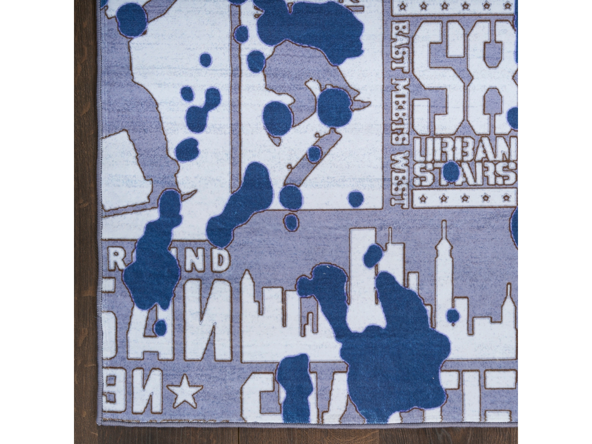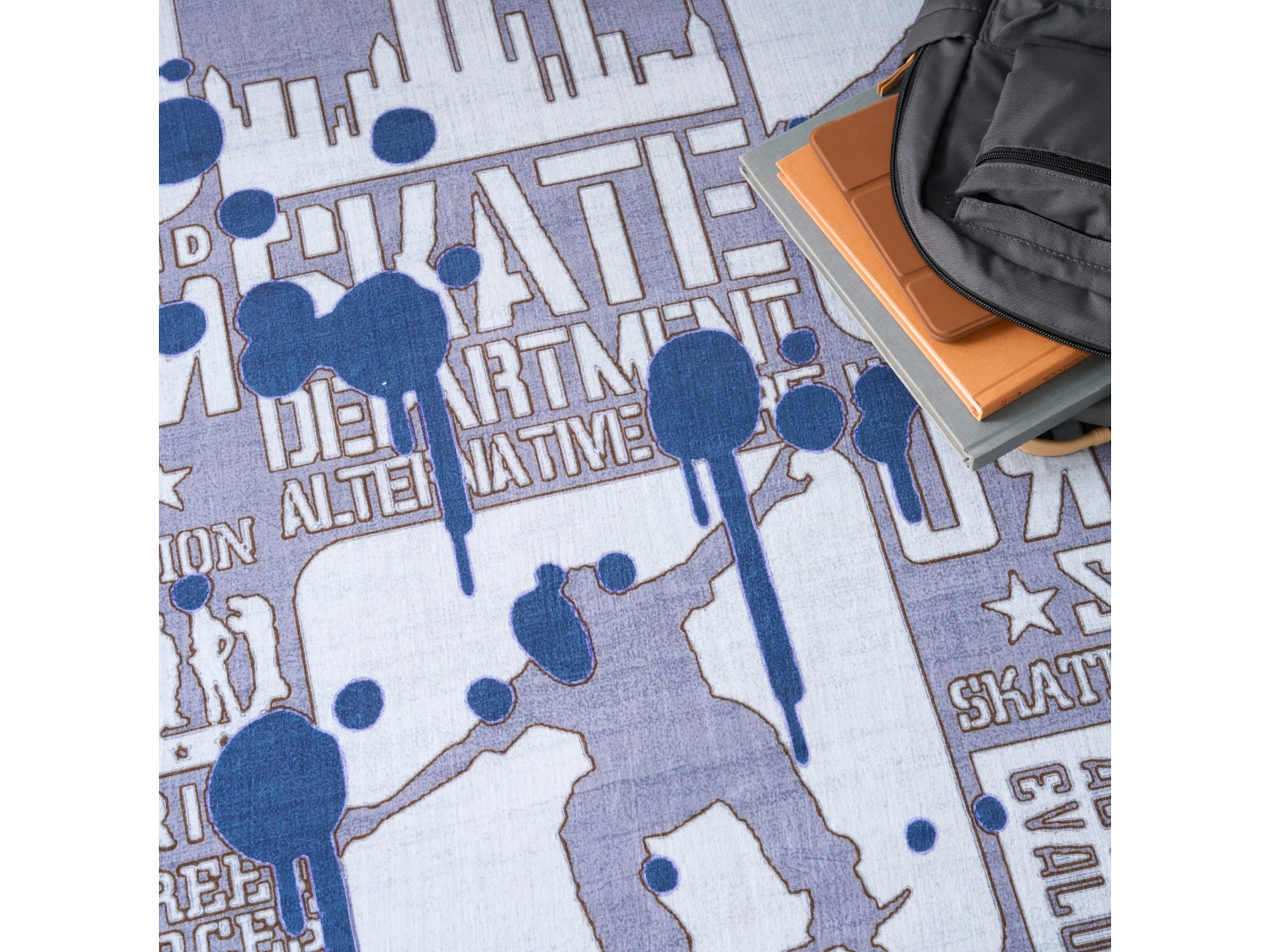 Bring a touch of street style to your child’s room with this kids rug from the Imagination collection. The printed pattern features graffiti-style lettering with paint splatters and skateboarding silhouettes perfect for any skateboard-loving kid or tween. This polyester rug is machine-washable and includes a non-skid backing.