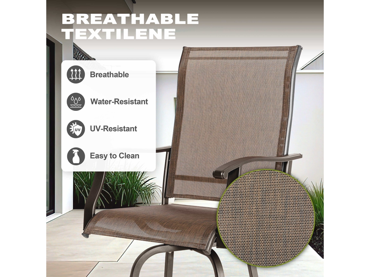 Breathable Textilene Fabric: Made of solid fiber with a tight weave, our durable textilene fabric provides the best support and comfort while remaining breathable, so you won’t feel sore or sultry after prolonged sitting in the hot summer.