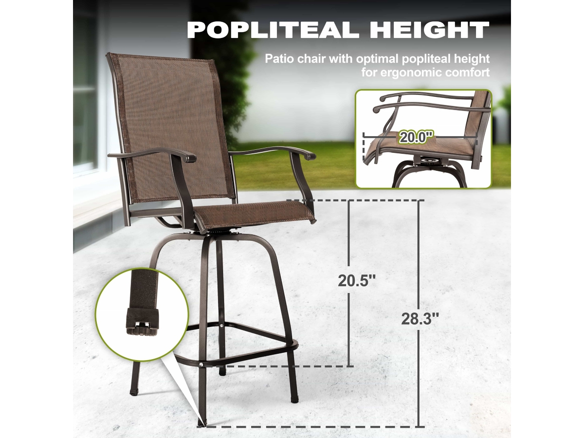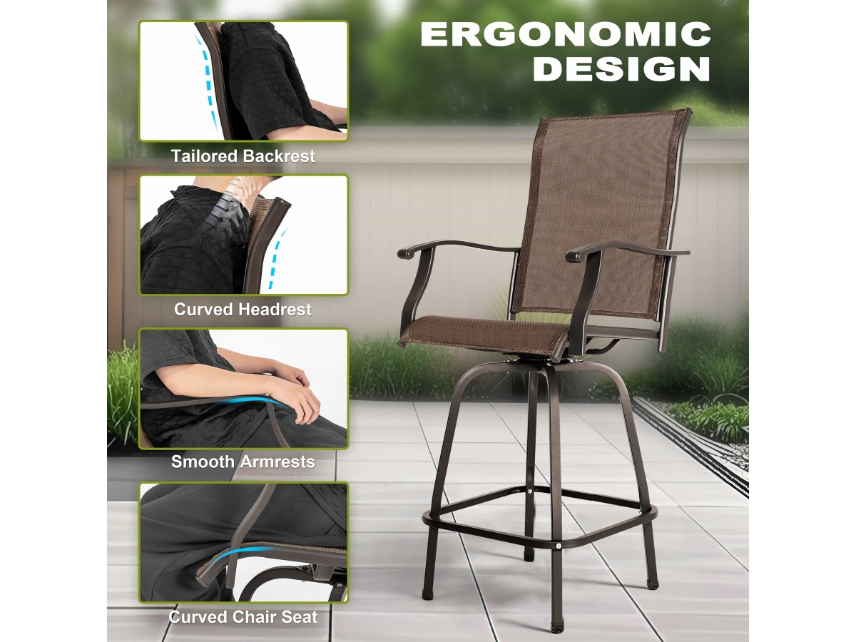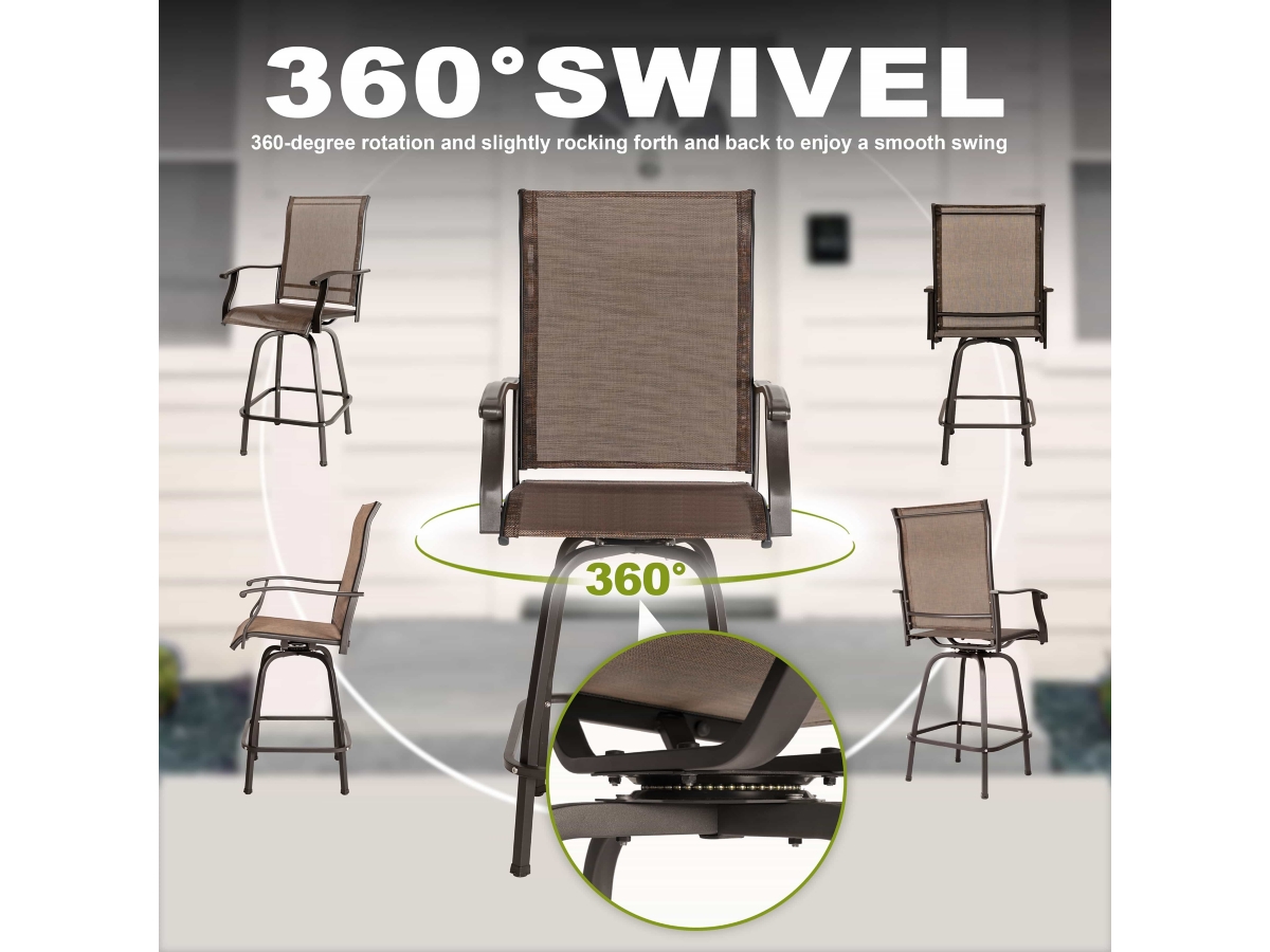 Wide Application: This swivel bar stool set is widely applied to different occasions, suitable for outdoor living spaces and also for indoor living room entertainment time.